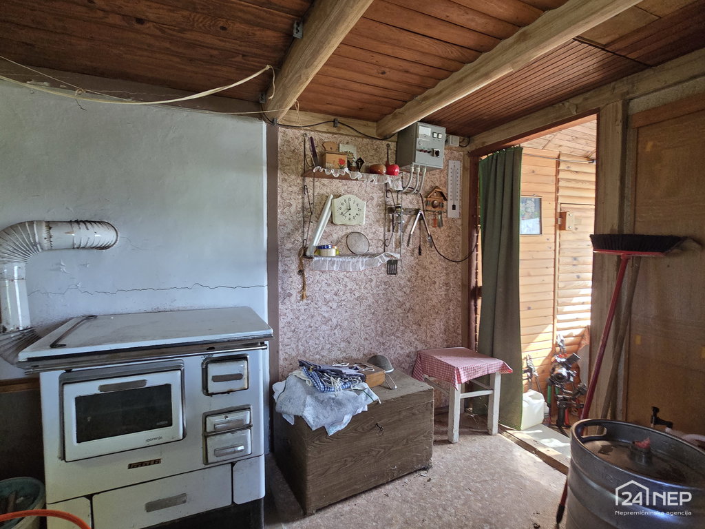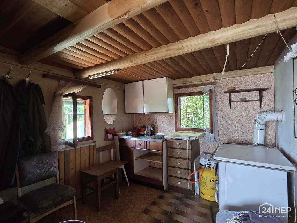 Na posesti stoji stara koča s pridihom preteklosti, ob njej pa nova vrtna lopa, zalogovniki vode, vinograd, sadovnjak in jagodičevje.