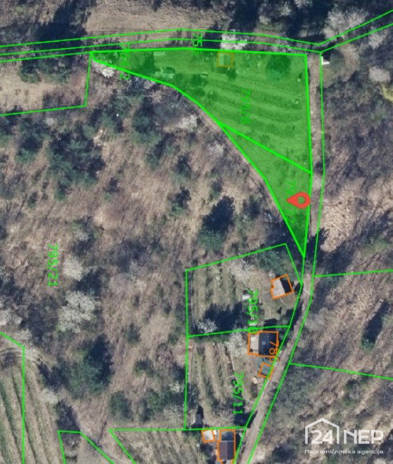 Parcela je ograjena, večinoma terasirana in delno očiščena.