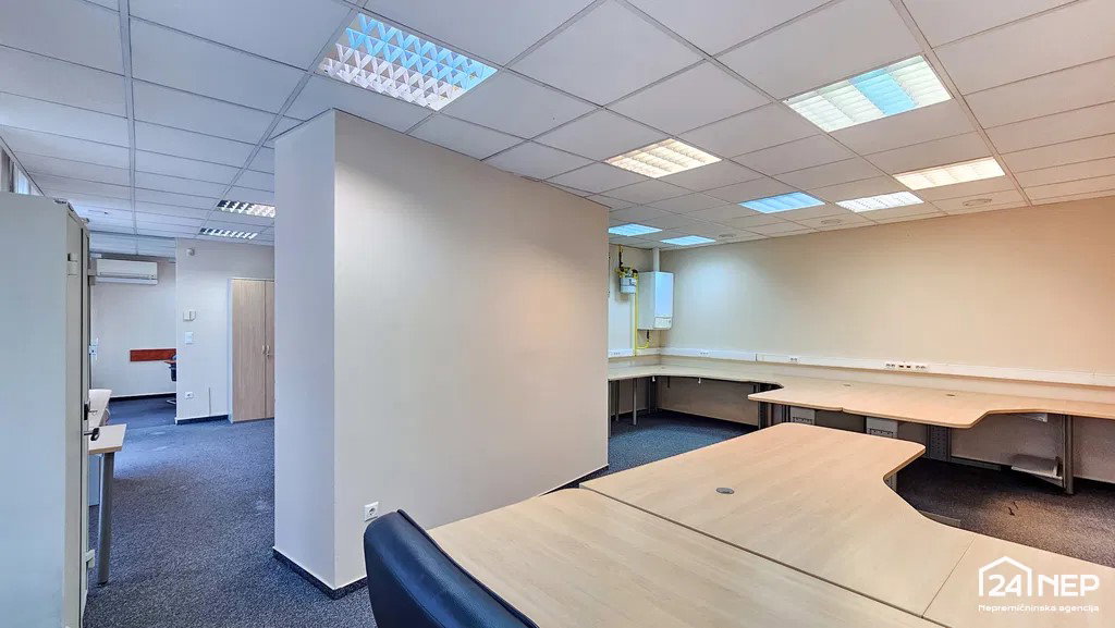 Razporeditev: velika sprejemnica, z manjšo odprto pisarno in velikim povezanim prostorom s pisarniškimi mizami in stoli v obliki črke L, mini kuhinjo, skladiščnim prostorom, sanitarijami ter izjemno lepo konferenčno sobo, opremljeno s stilnim pohištvom.