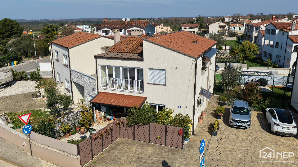 Prodamo prostorno in svetlo trisobno pritlično stanovanje v sodobni dvostanovanjski hiši, zgrajeni leta 2007 in v celoti obnovljeni leta 2021, v idiličnem istrskem kraju Tar – le 7 km od centra Poreča. Stanovanje z modernim videzom in mediteranskim vzdušjem harmonično sobiva z okolico ter ponuja vse, kar si zahtevnejši kupec želi: kakovostno gradnjo, zasebni vrt, lastno parkirišče za 2 vozili in odlično lokacijo.