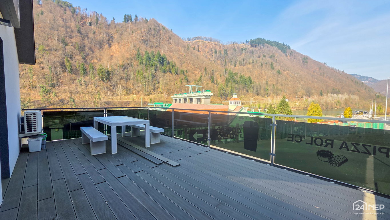 • Sprednja terasa: 100 m² (od tega 25 m² pokrite)