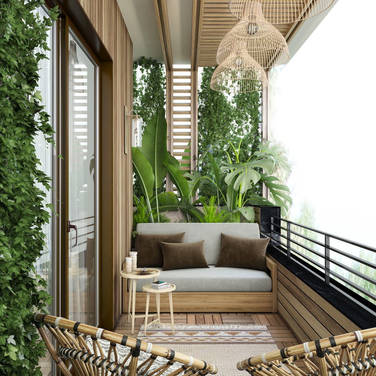 Veliko spremembo v uporabnosti terase lahko pomenijo tudi preprosti (in poceni) dodatki: balkon osvežite s preprogo iz vinila ali naravnih vlaken ter ga zastrite s preprosto prosojno zaveso.