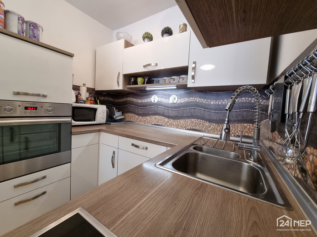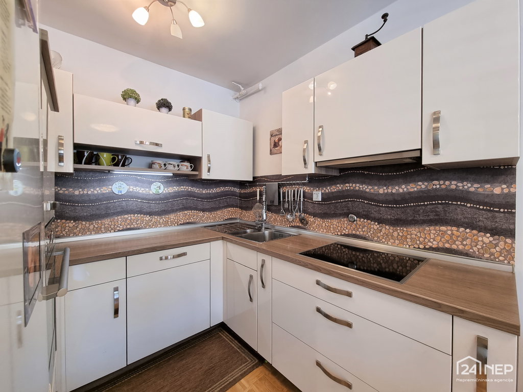 Oprema: V stanovanju ostane komplet vsa oprema kot je videna v oglasu; nova, moderna kuhinja (2017) z vsemi aparati (Elektrolux; pečica, indukcijska kuhalna plošča, hladilnik z zamrzovalnikom), pralni stroj, televizija, sesalci, kavni avtomat, pohištvo, vse.