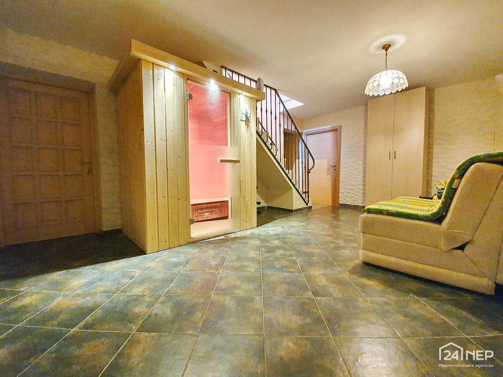 - Klet: wellness (savna), stranišče, kurilnica, dve shrambi in garaža