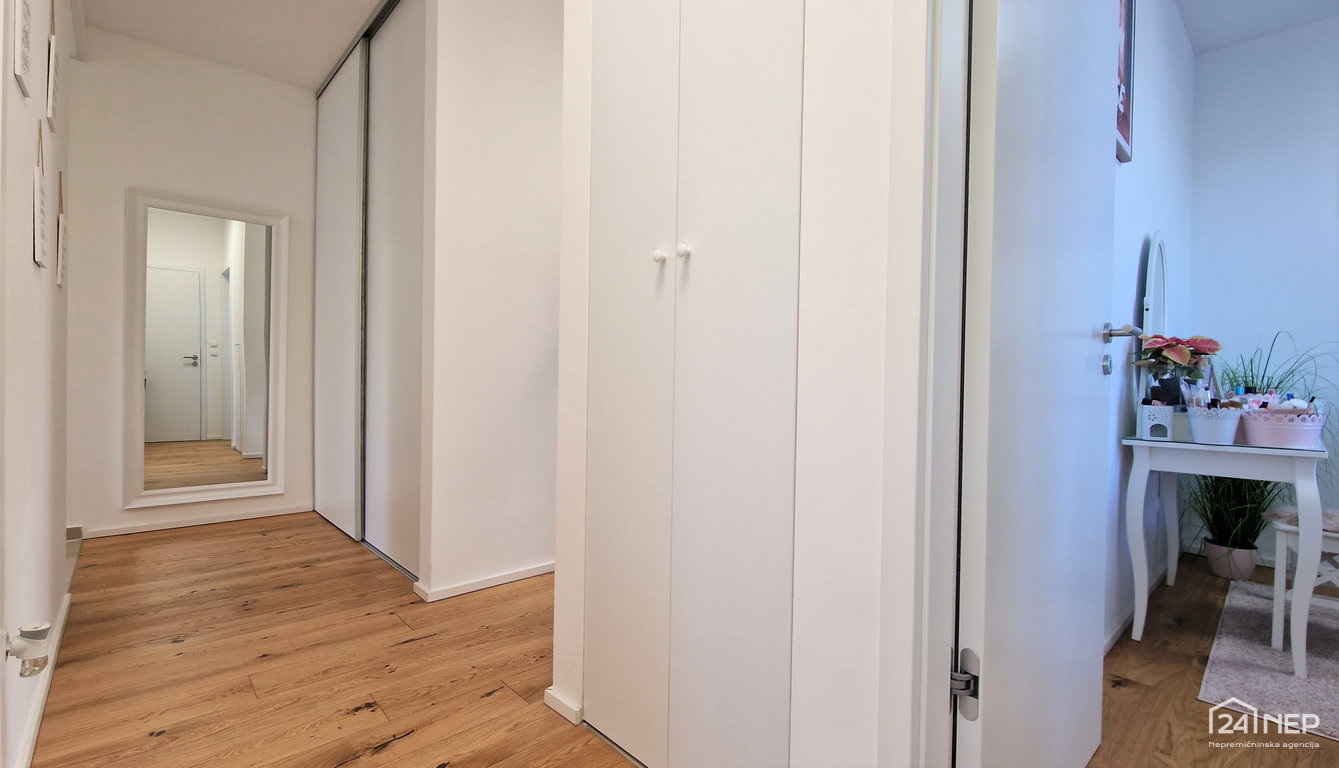 Stanovanje se prodaja popolnoma opremljeno. Vsa oprema je višjega cenovnega razreda in le malo rabljena (stanovanje je staro 1 leto).