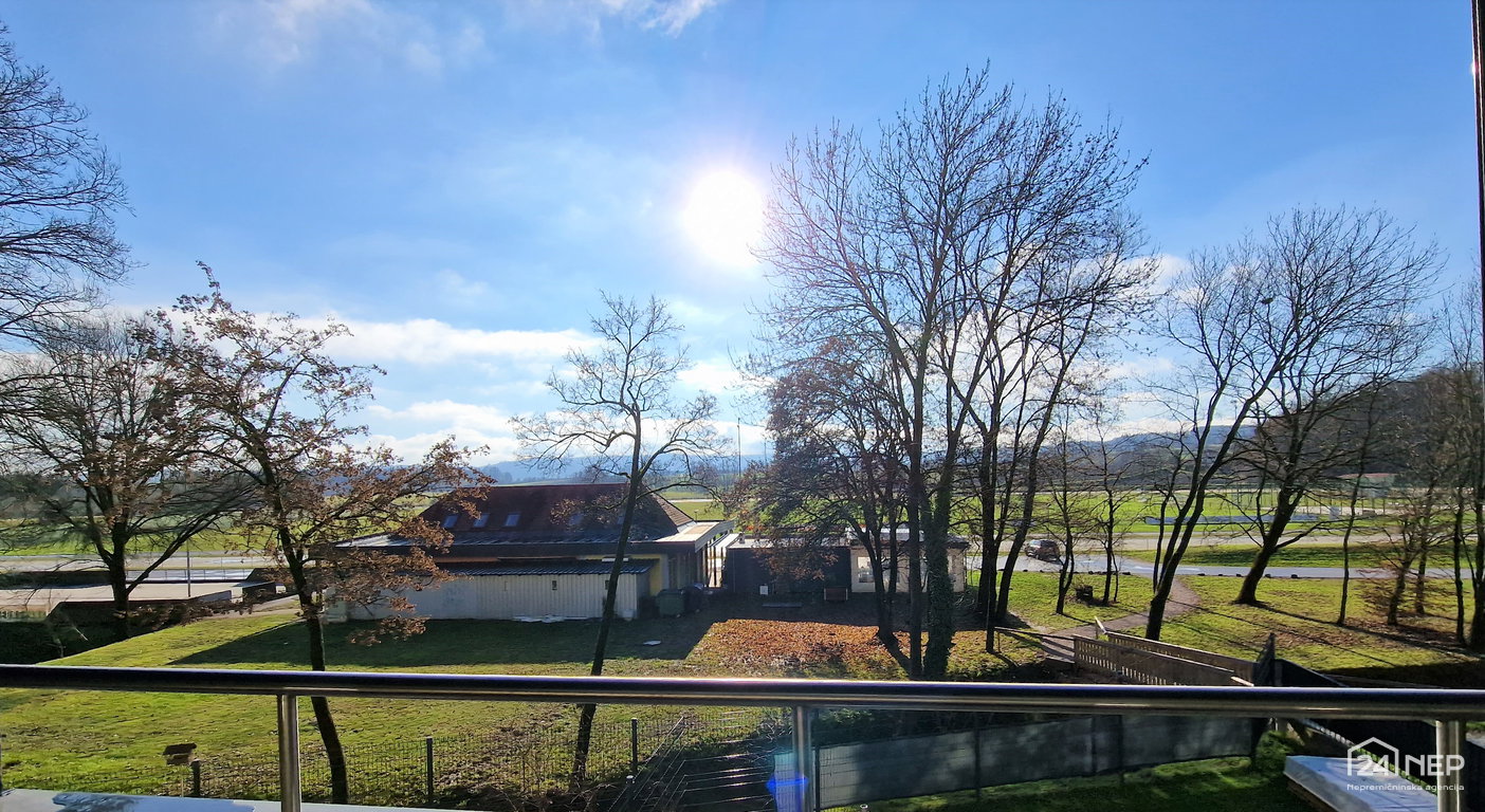 Razporeditev: Prostoren hodnik, ogromen dnevno bivalni prostor z izhodom na velik balkon, spalnica, 2x soba, kopalnica (tuš in wc) ter ločeno stranišče. Stanovanje je izjemno sončno, svetlo ter ima čudovite poglede na zeleno okolico.