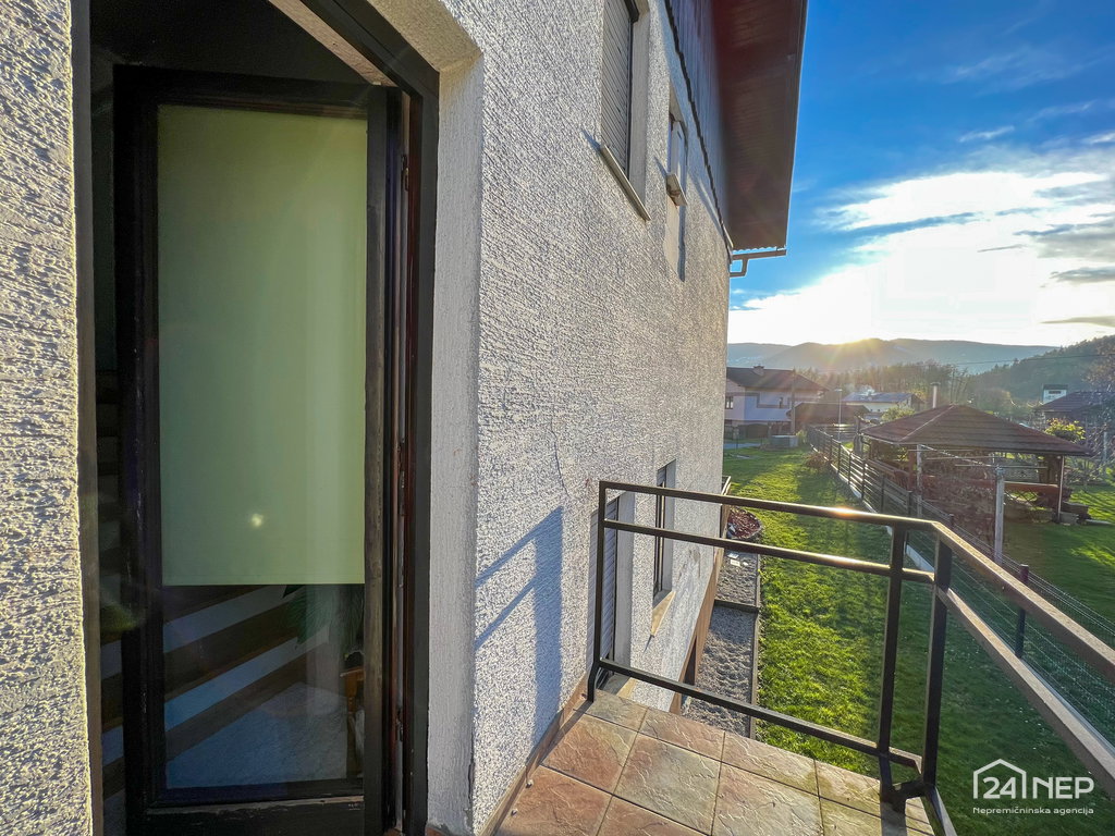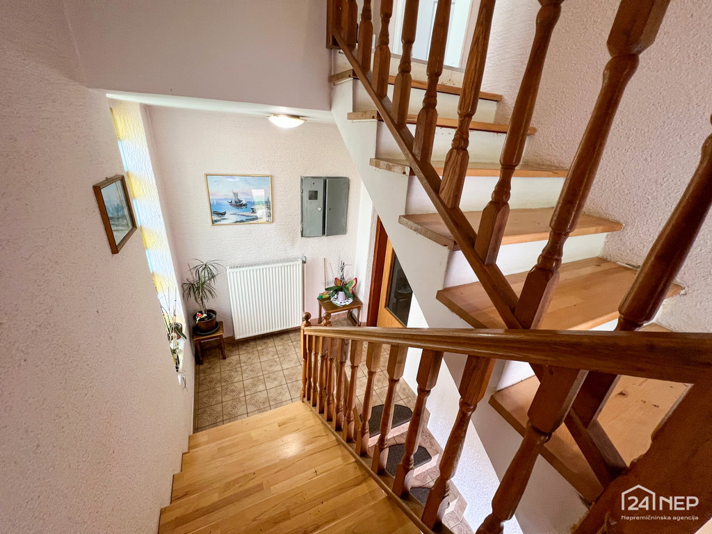 - 1. nadstropje: dnevnobivalni prostor, spalnica, dodatna soba/pisarna, dva balkona, kopalnica, ločena toaleta