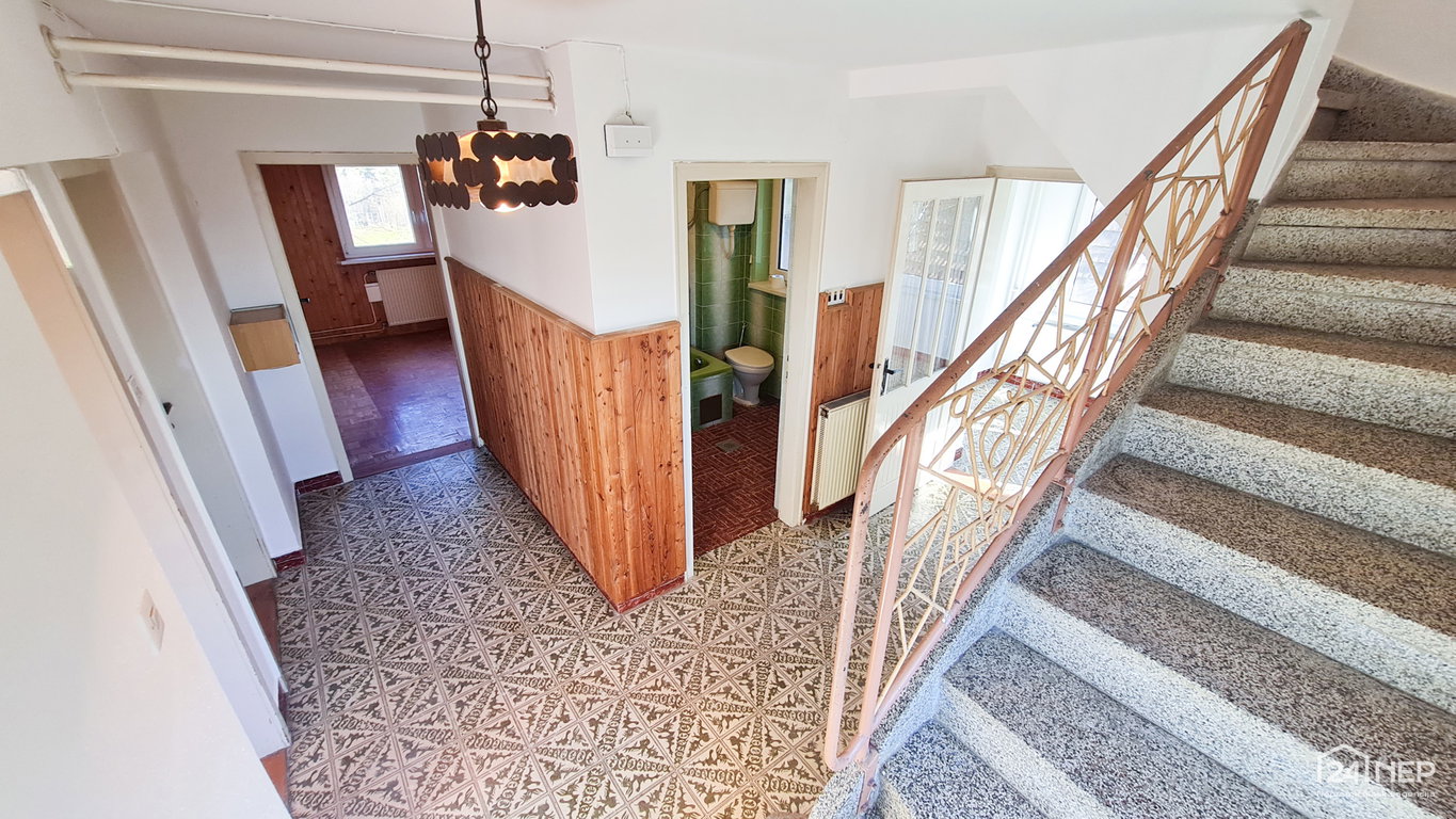 - Pritličje: predsoba, hodnik, kuhinja, 2x soba, kopalnica s toaleto, stopnišče