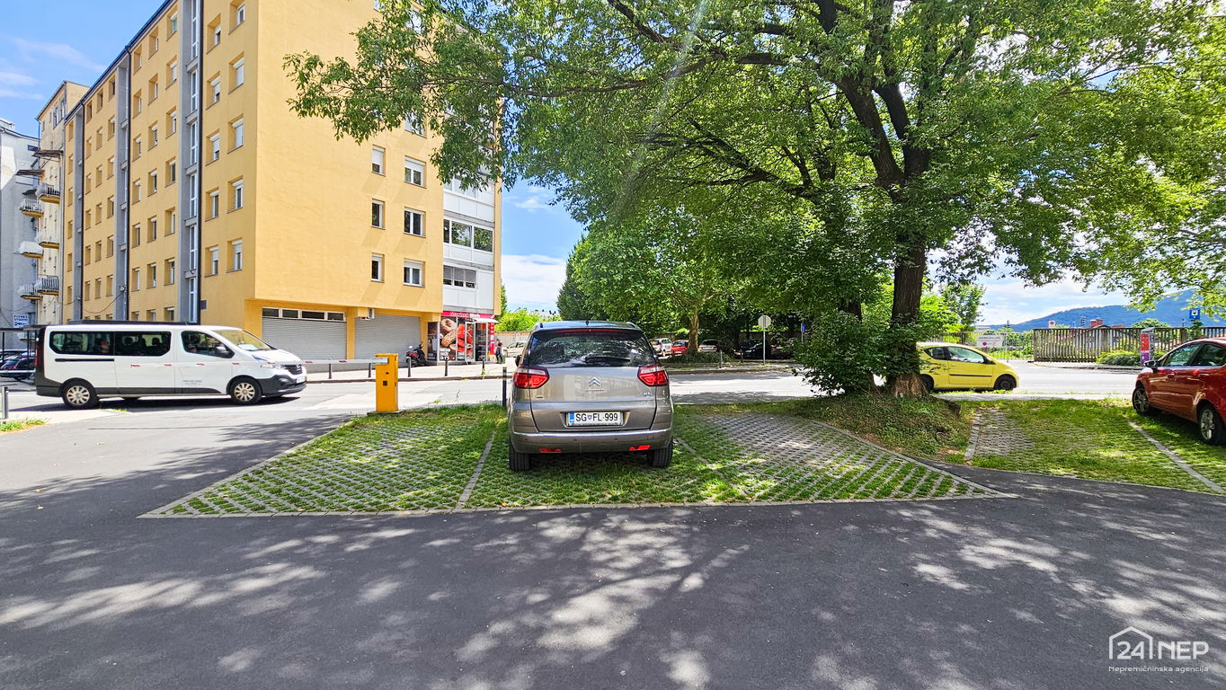 Parkiranje je zagotovljeno za zapornico, na notranjem dvorišču objekta. Alternativa še javna parkirišča v neposredni bližini objekta.
