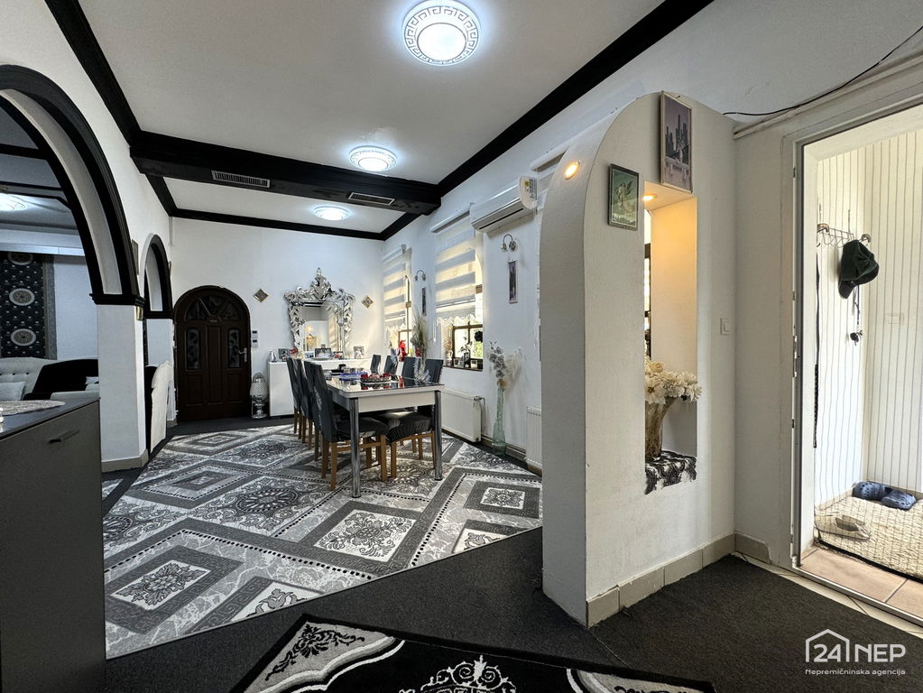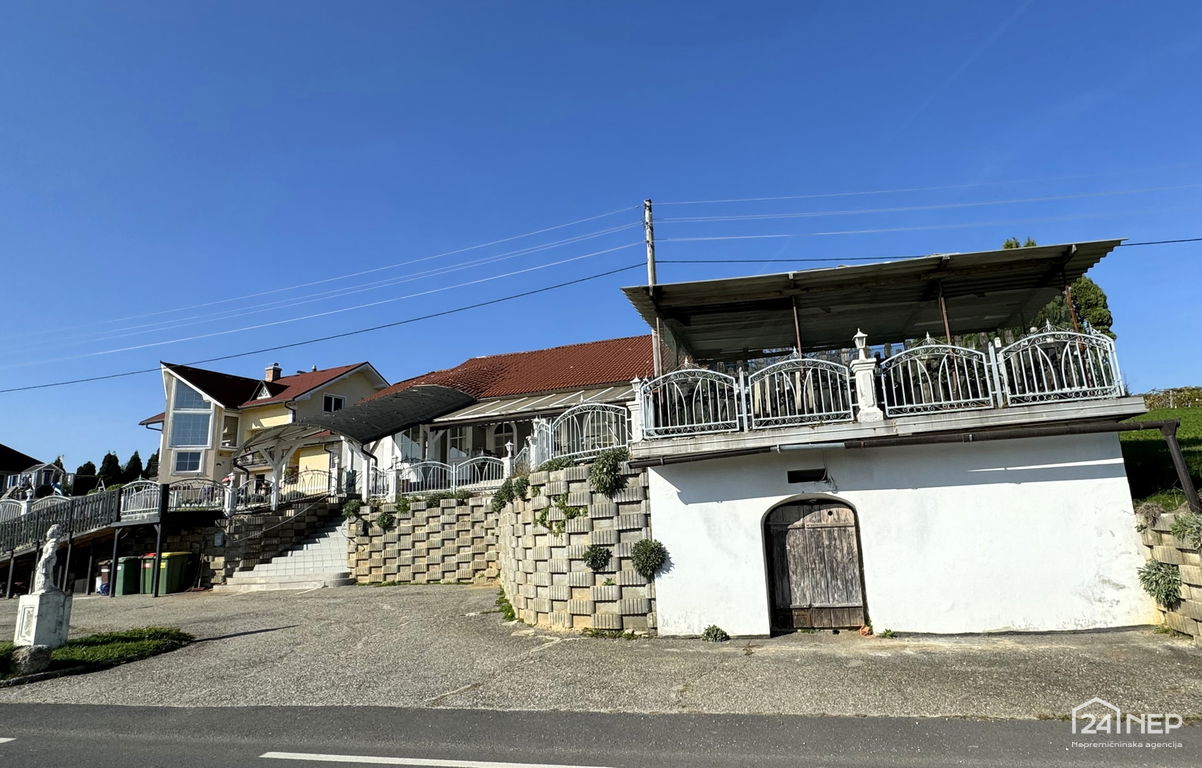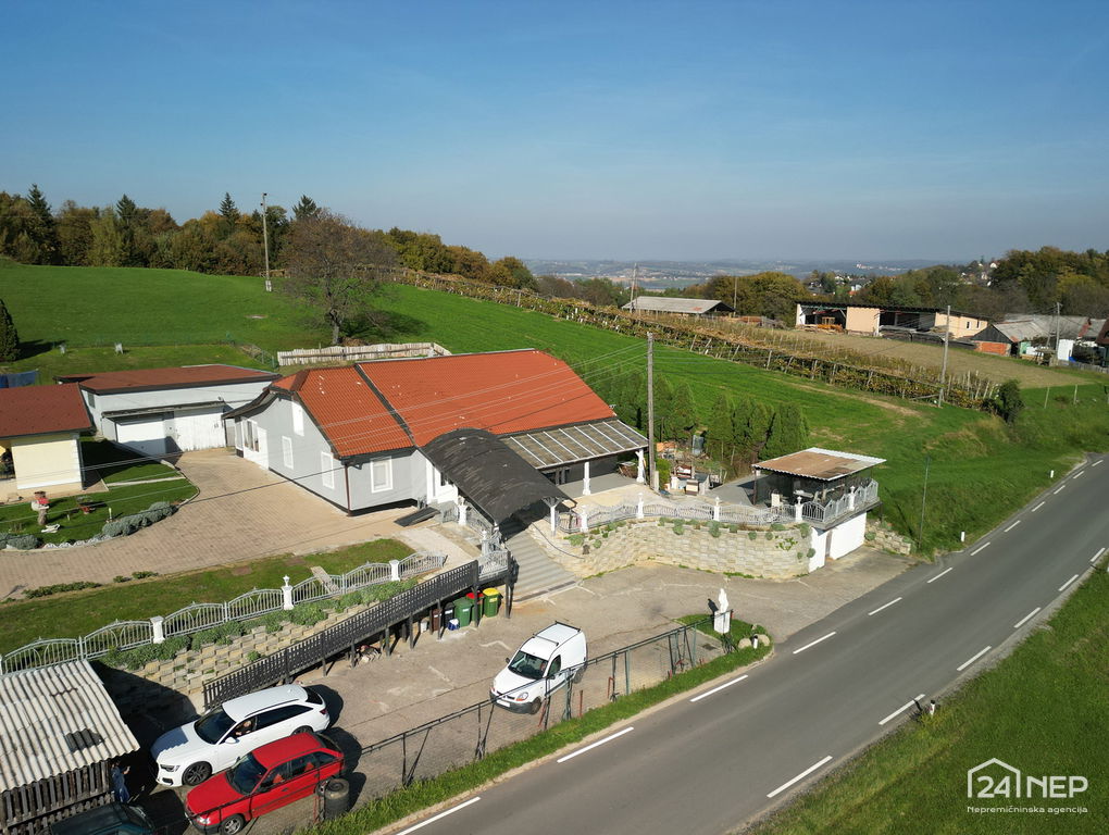 Dodatno: prostorna garaža (cca 70 m²), vinska klet, veliko parkirišče, velika terasa, možnost uporabe za različne namene