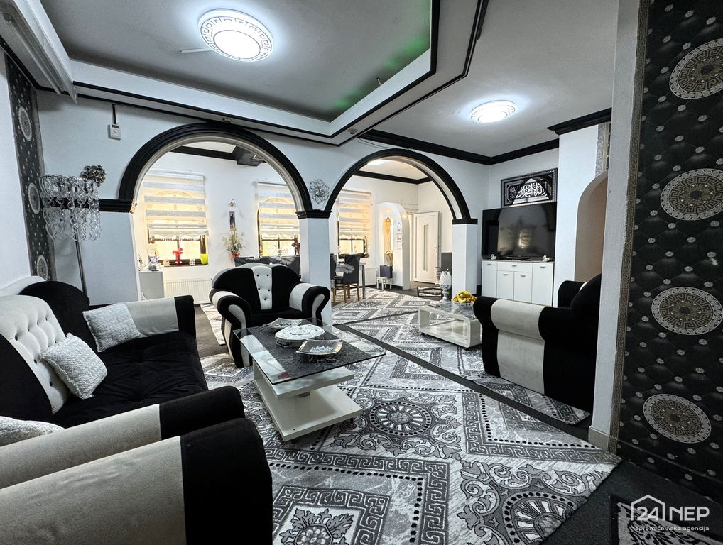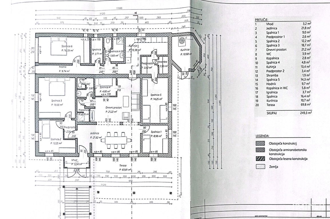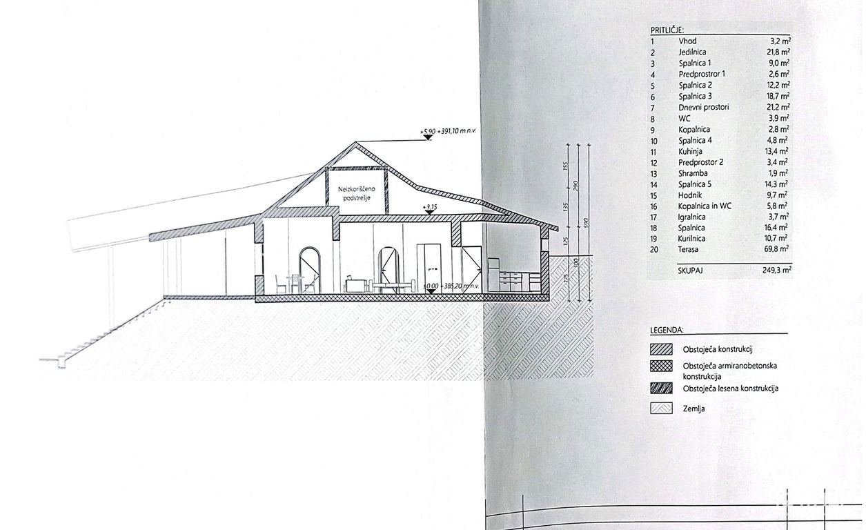 Prostorska razporeditev: funkcionalno razporejeni prostori, velik dnevno-jedilni prostor (43 m²) z izhodom na teraso (cca 70 m²)