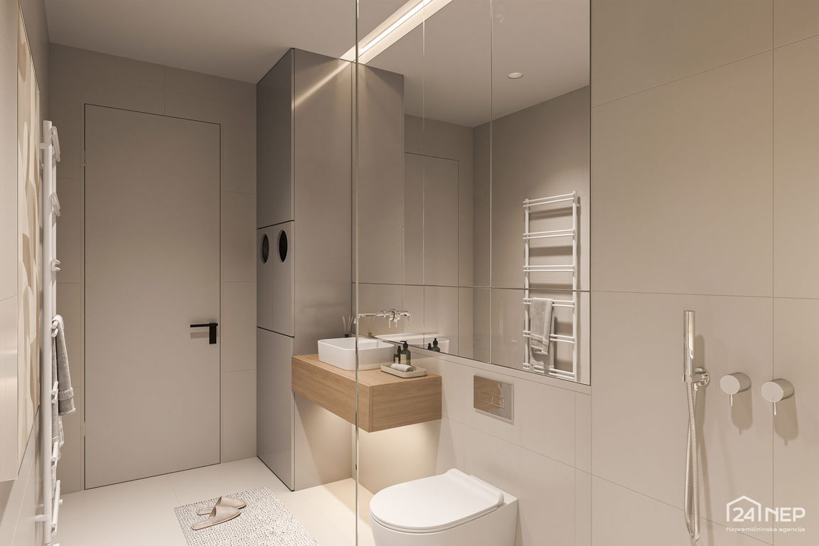 V ceno je zajeto finalizirano stanovanje z lastno toplotno črpalko, sanitarno opremo, klimo, rekuperacijo.