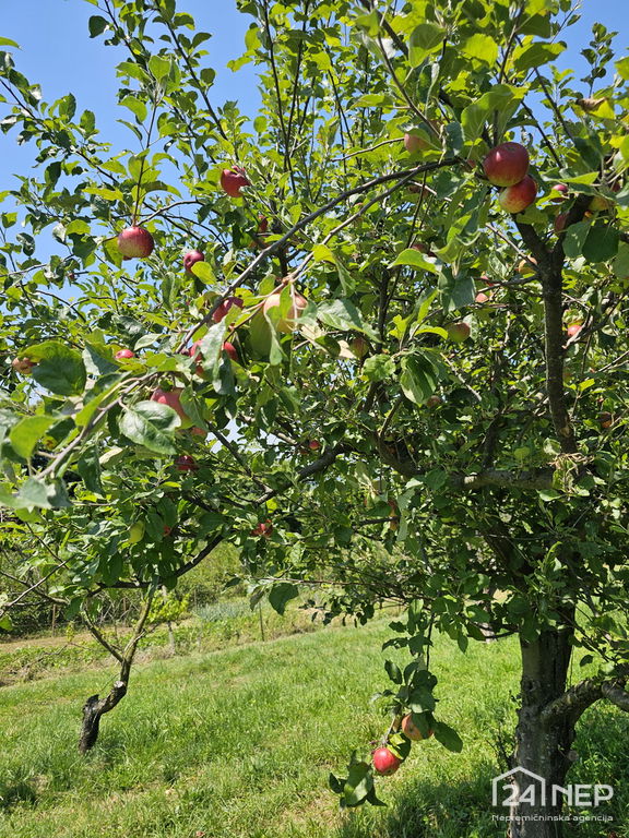 Na parceli je veliko sadnega drevja: hruške, jabolka, slive, kaki, kivi ter veliko cvetličnih grmovnic.
