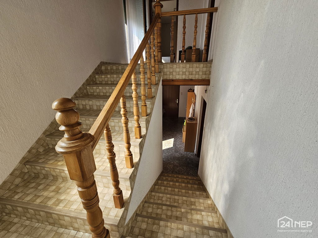 - razporeditev: predprostor, kuhinja z jedilnico in dnevno sobo, spalnica, kopalnica, stopnišče v nadstropje, 3 večje sobe, 2 manjši sobi, balkon iz spalnice s pogledom na dolino ter terasa iz hodnika