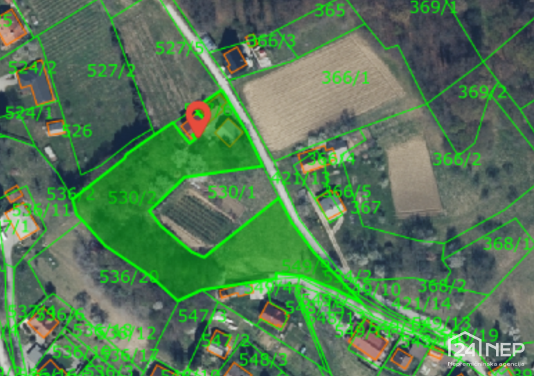 Velikost parcele: 5.636 m2 ter velikost objektov: