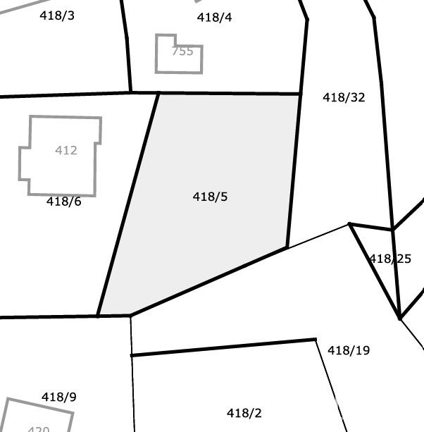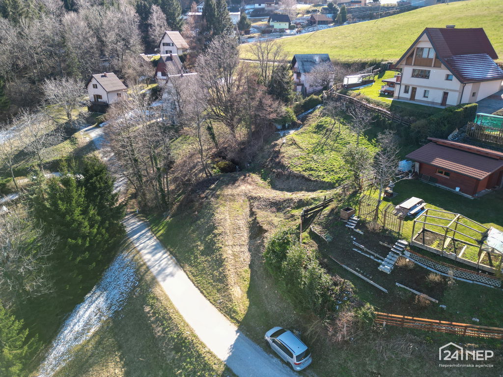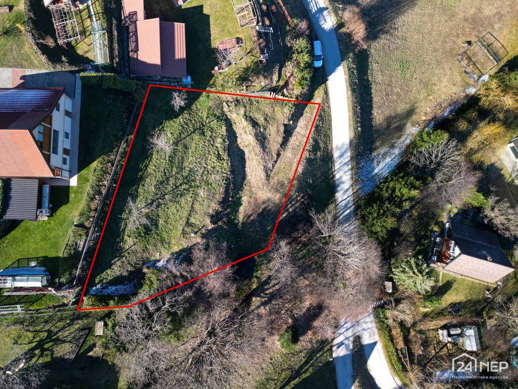 Parcela ima 705 m2. Zemljišče je pod naklonom.