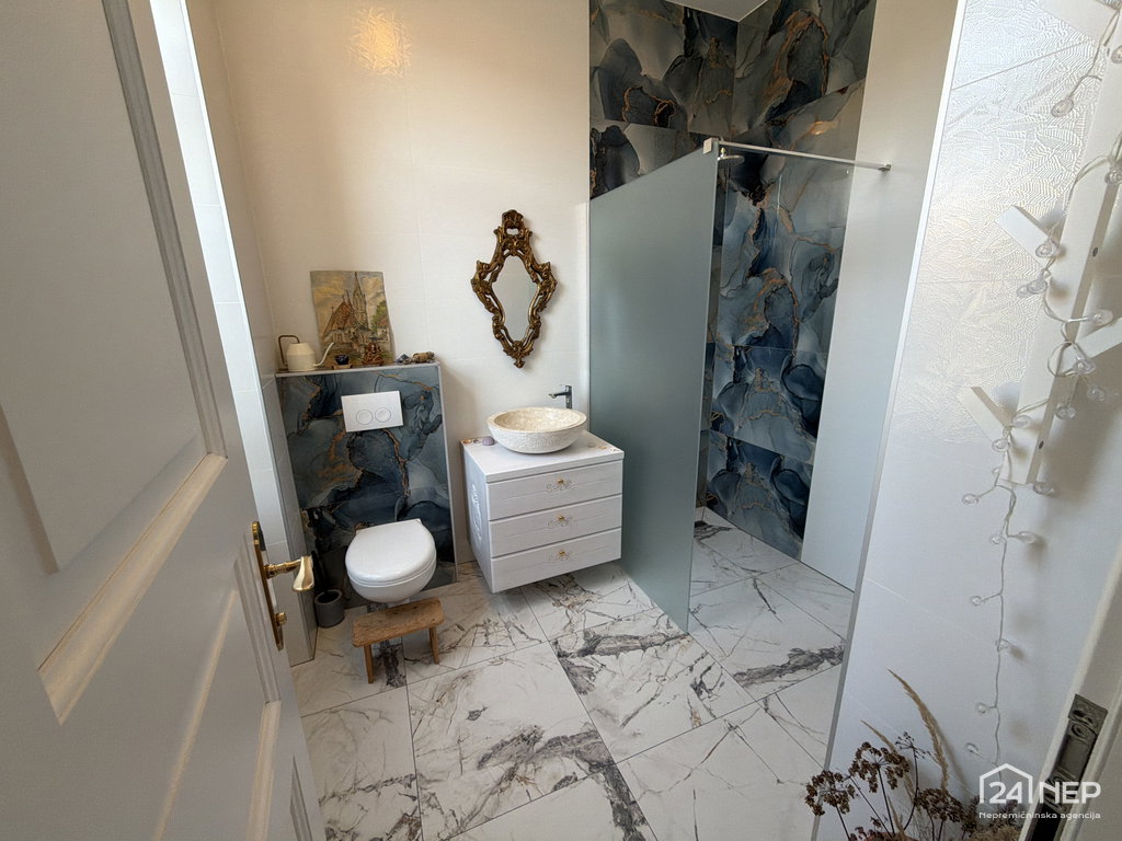Ločen bivalni del z lastno kopalnico – idealen za varuško, skrbnico, varnostnika ali večgeneracijsko bivanje