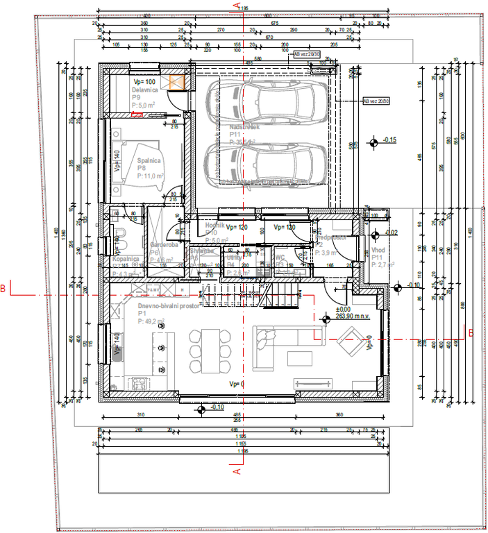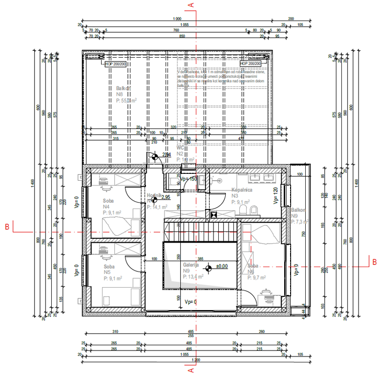 - Neto tlorisna površina hiše: 256,1 m2