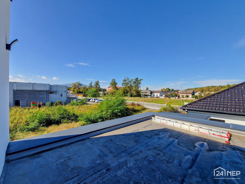 - Dodatno: v nadstropju se nahaja terasa, pred objektom pa parkirišče za 2 avtomobila