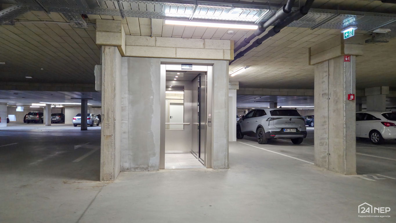 Stanovanje zajema predprostor, »utiliti«, hodnik, kuhinjo z jedilnico in dnevno sobo z izhodom na balkon, kopalnico s sanitarijami in spalnico. Posebnost je priročna shramba, ki je locirana ob stanovanju. Parkiranje je urejeno v garažni hiši pod objektom in ob objektu.