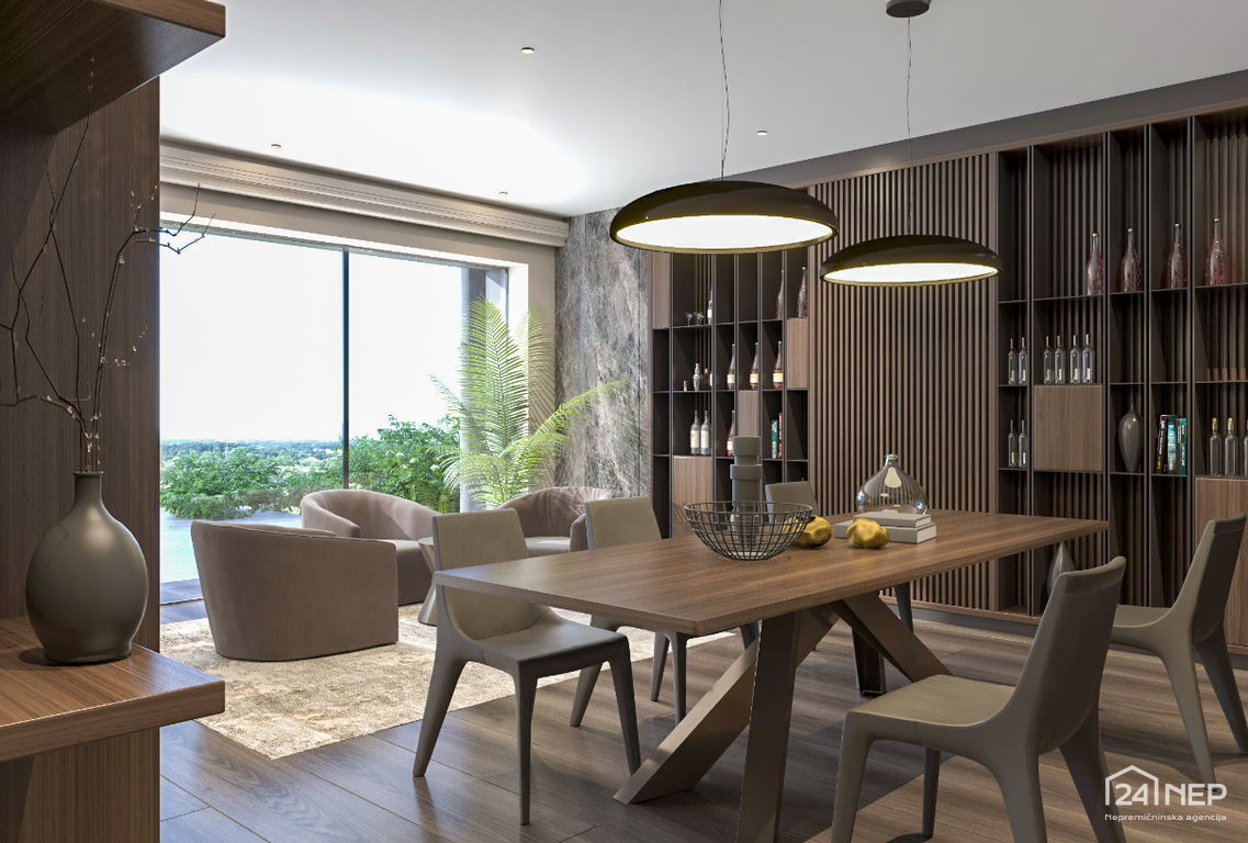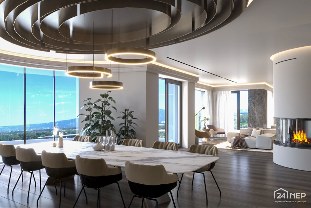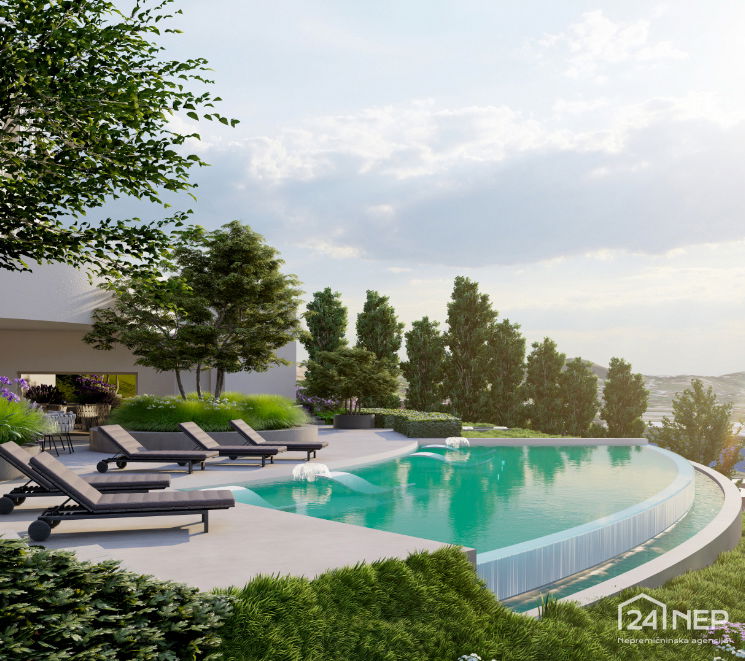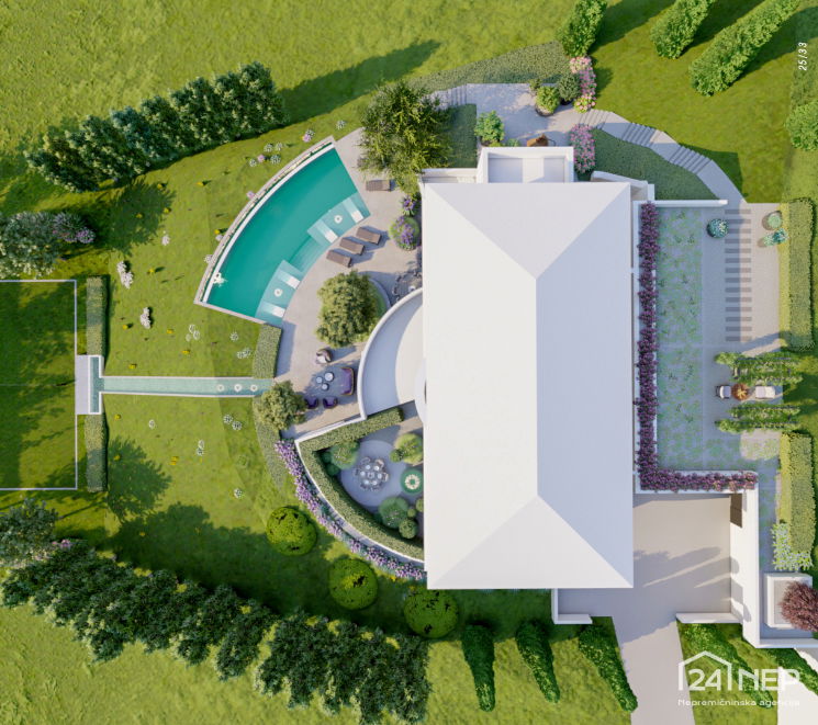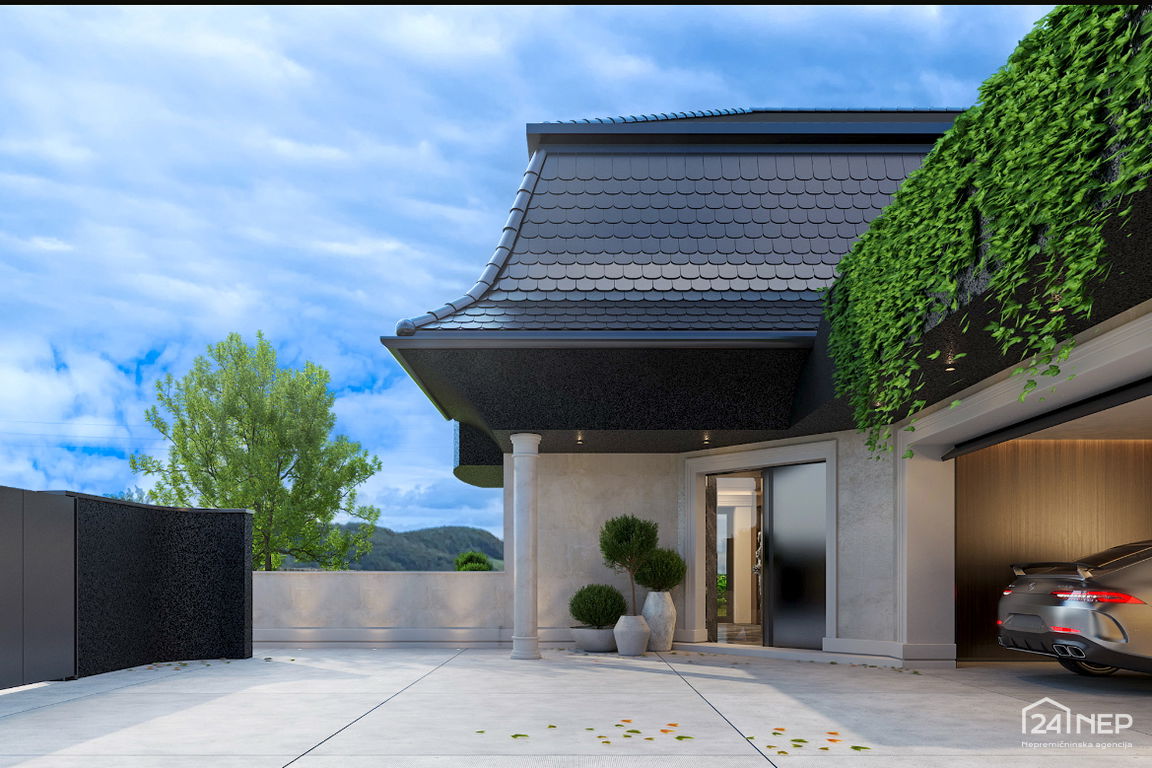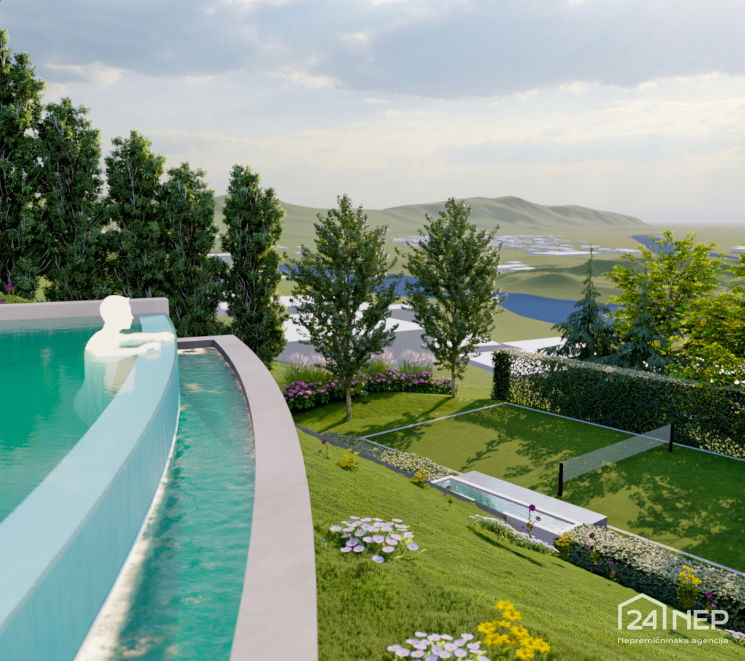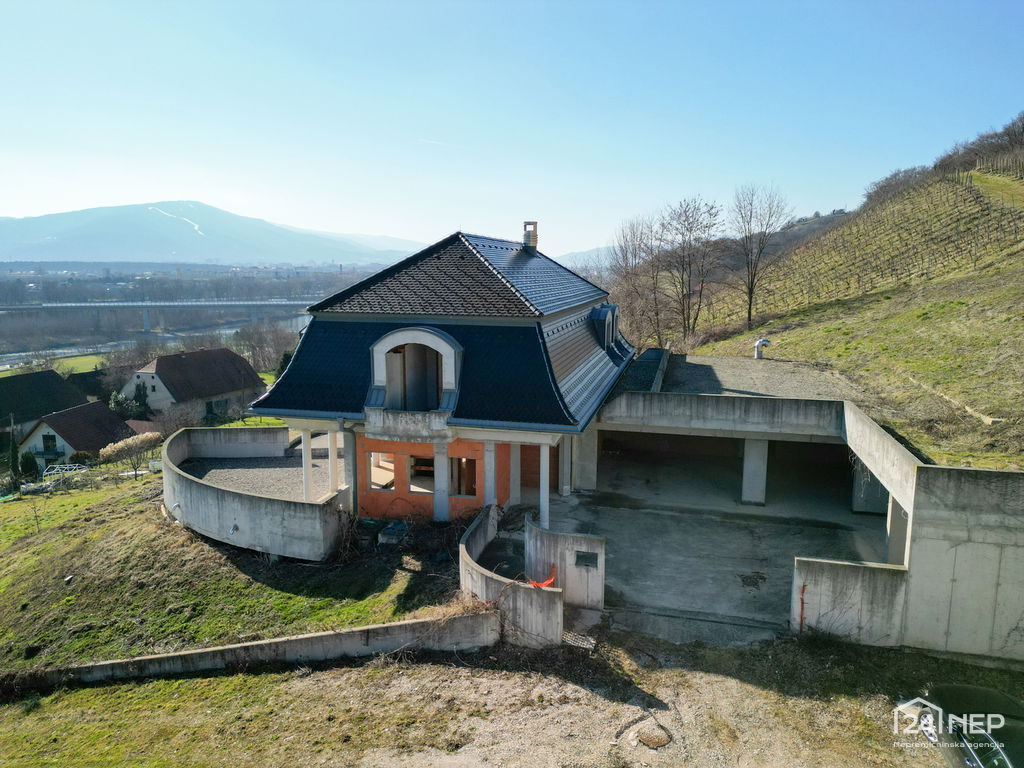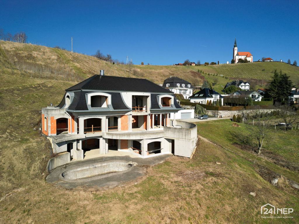 Občina Maribor, Malečnik: edinstvena Vila z zunanjim in notranjim bazenom, dvigalom in garažo za tri avtomobile. Hiša je zgrajena do 3. gradbene faze in stoji na zemljišču velikosti 2.677 m2. Neto uporabna površina znaša 834 m2. S svojo dominanto, južno lego nudi panoramski pogled na Maribor, Pohorje in Dravsko dolino.