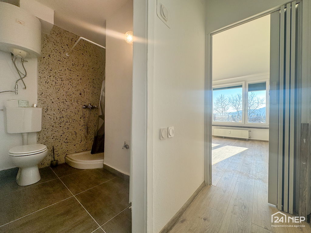 • Razporeditev: predprostor, kopalnica z WC-jem, prostorna in svetla dnevno-bivalna soba