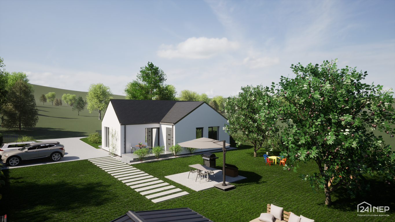 V naselju Kramarovci, v občini Rogašovci, na idilični in mirni lokaciji tik ob naravi, vam predstavljamo samostojno pritlično hišo – montažno novogradnjo, ki bo zgrajena na ključ, ki stoji na prostorni, ravni in urejeni parceli velikosti kar 949 m². Hiša je zasnovana kot udoben in funkcionalen dom, izdelana bo iz kakovostnih naravnih materialov in ponuja celovito rešitev na ključ, kar omogoča takojšnjo vselitev brez dodatnih vlaganj. Objekt bo v zelenem, tihem okolju s hitrim dostopom do Sv. Jurija (3 km) ter le 1 km od meje z Avstrijo, kar zagotavlja popolno kombinacijo mirnega bivanja in praktične povezljivosti. S svojo sodobno montažno zasnovo, izjemno toplotno in zvočno izolacijo ter vgrajenim talnim gretjem in toplotno črpalko nudi hiša visoko energijsko učinkovitost in nizke obratovalne stroške skozi vse leto.