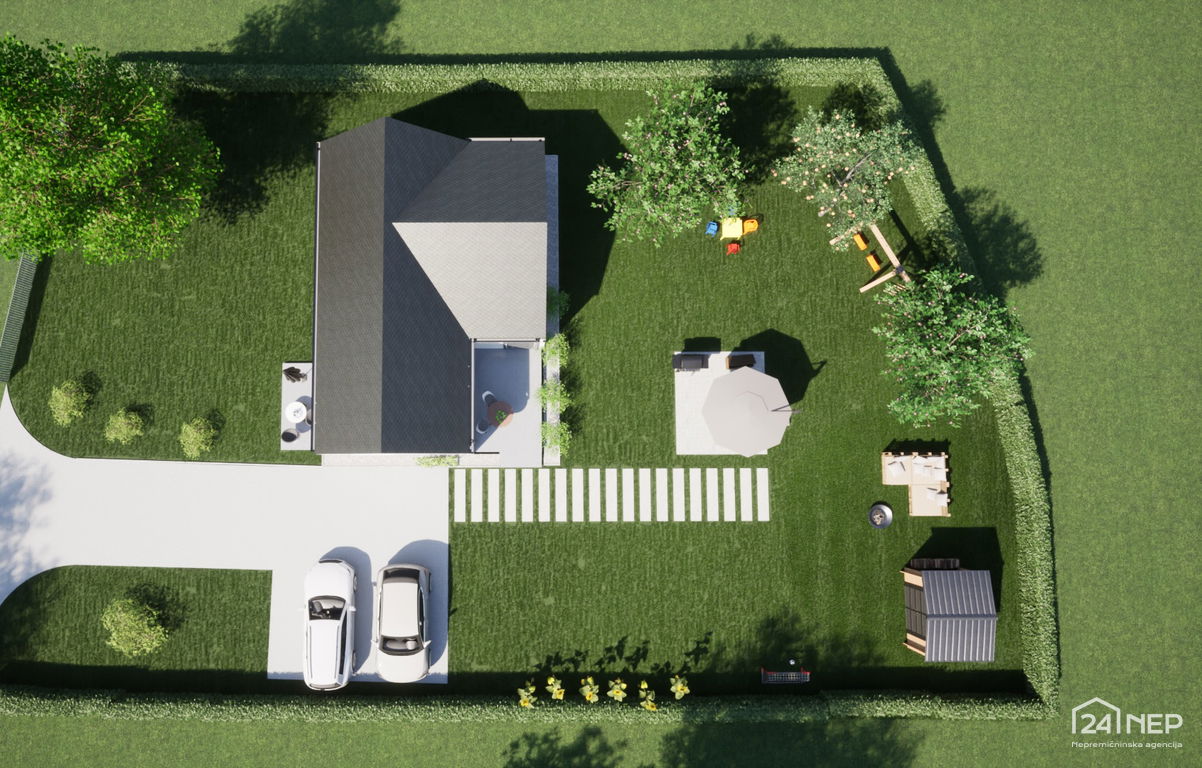 – velik del parcele ostane uporaben (vrt, terasa, igrišče, parkiranje)