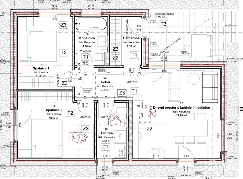– trojni sloji knauf oblog (12 mm + 15 mm) → trdnost, stabilnost, zvočna zaščita