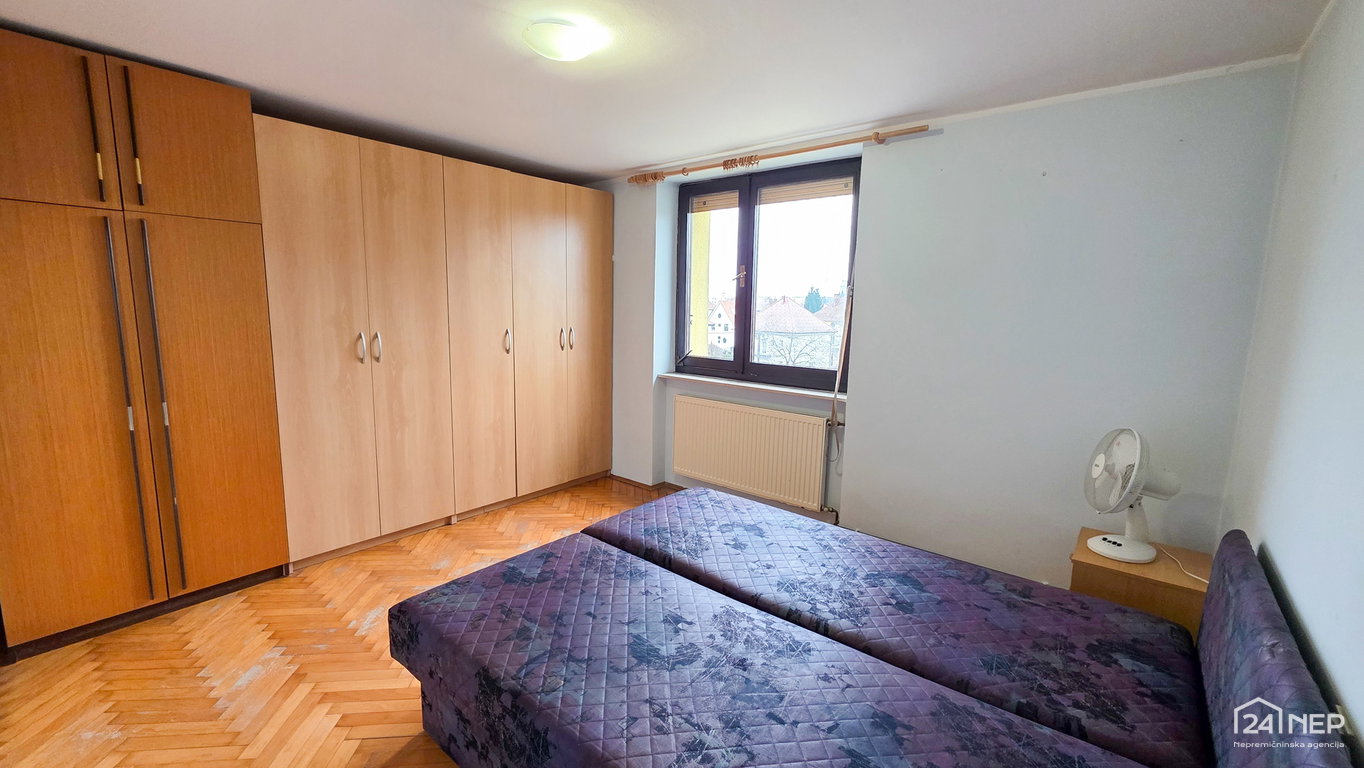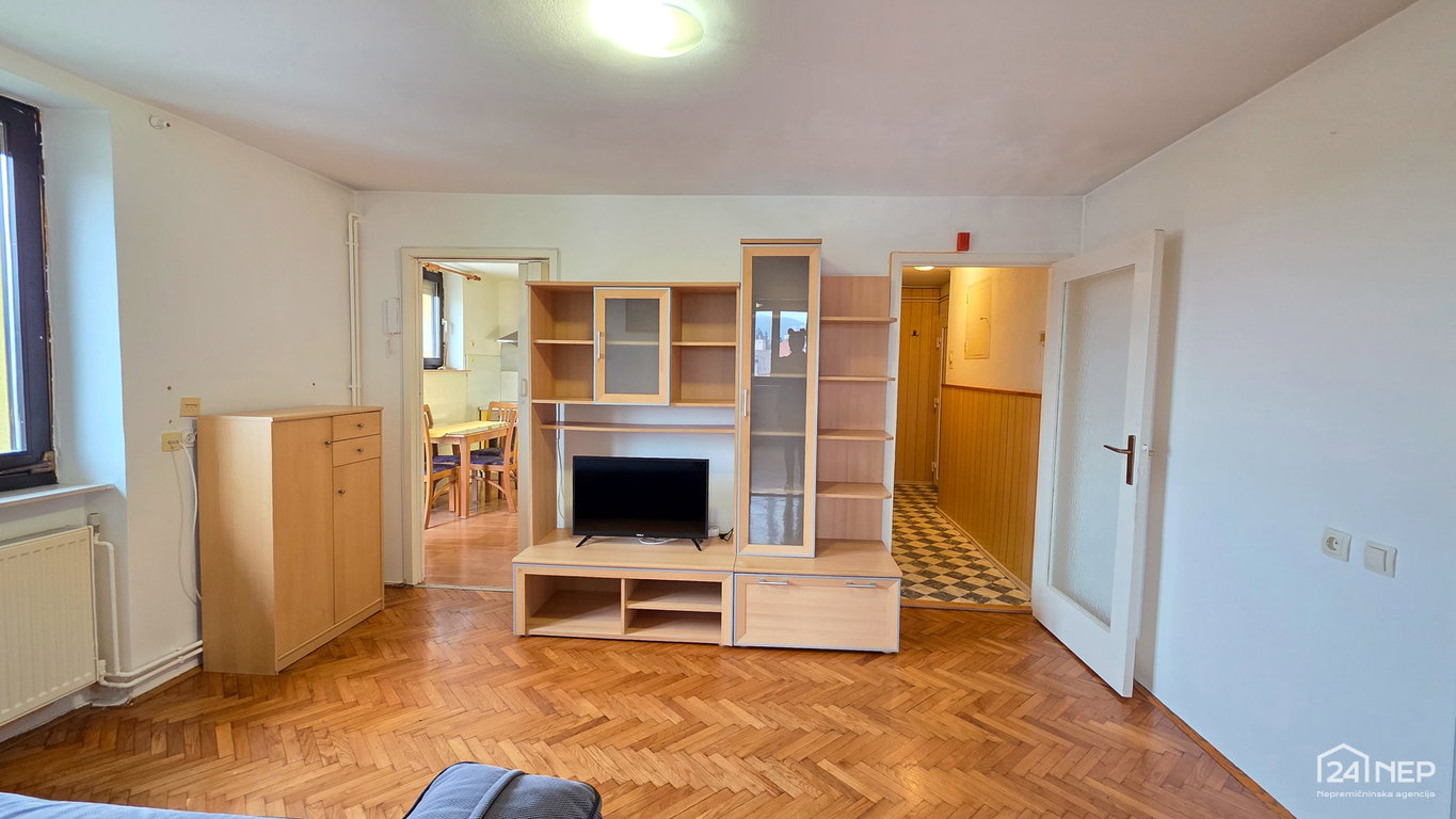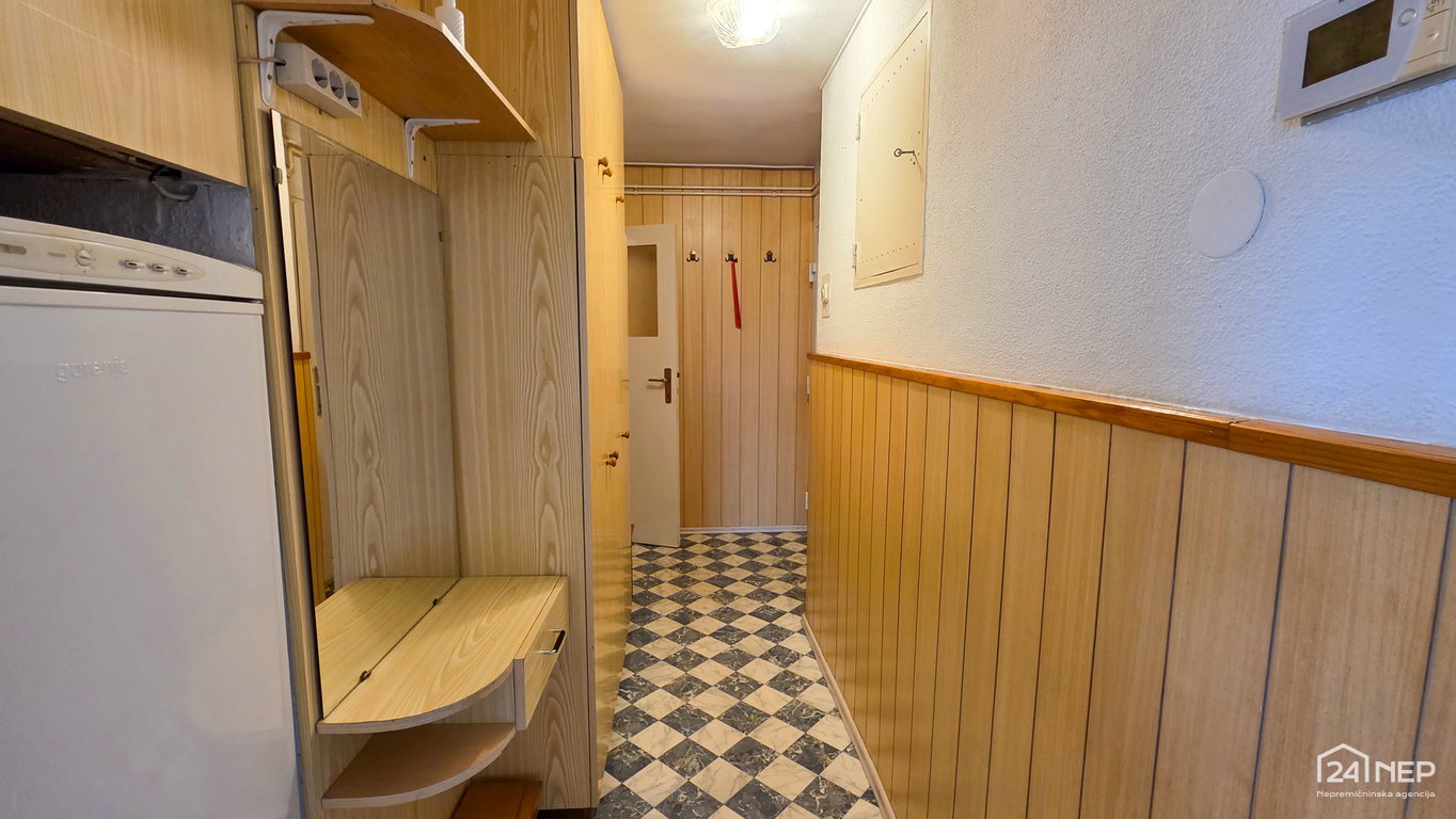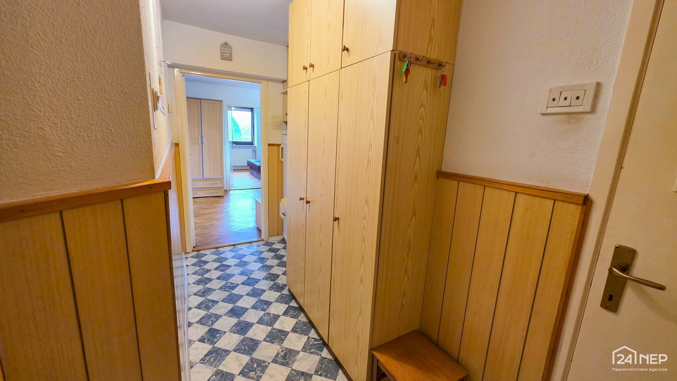 Razporeditev: predsoba, kopalnica z WC-jem, dnevna soba, kuhinja z izhodom na balkon, spalnica.