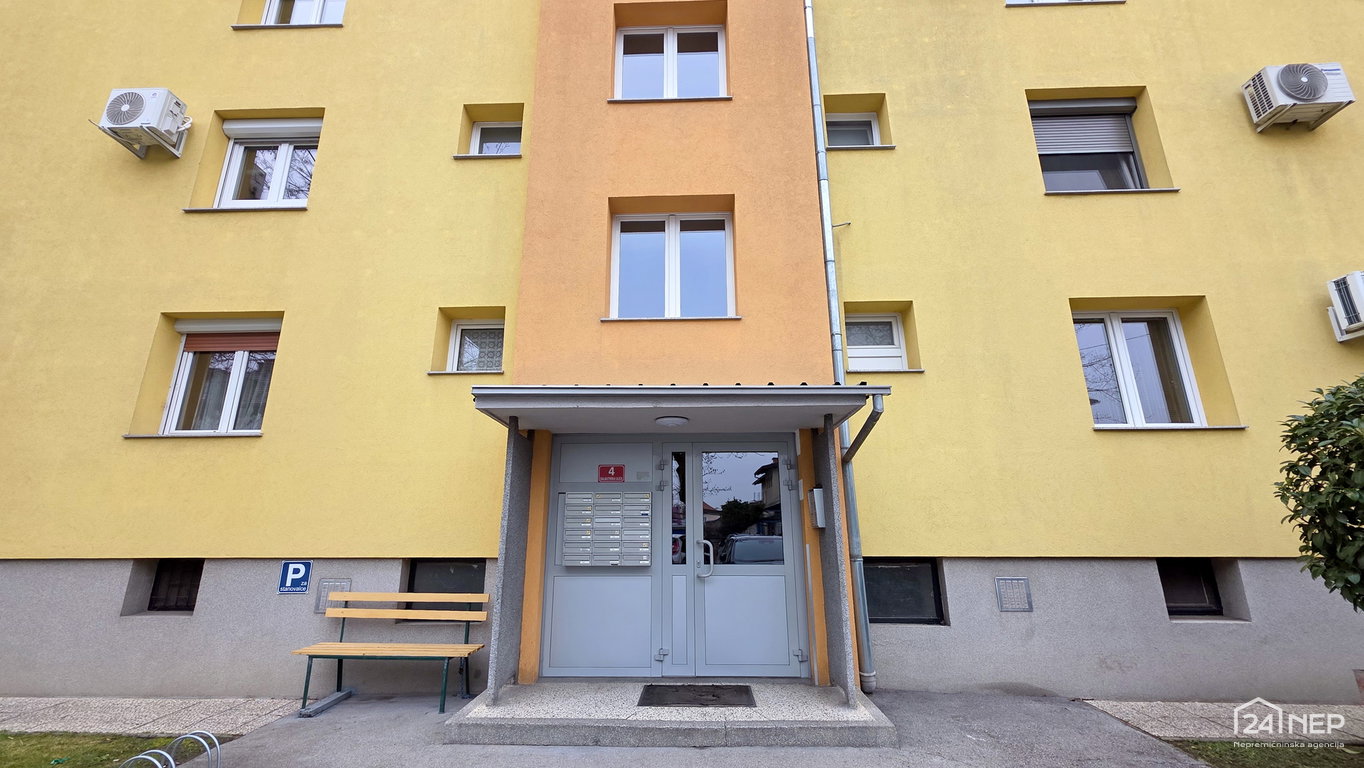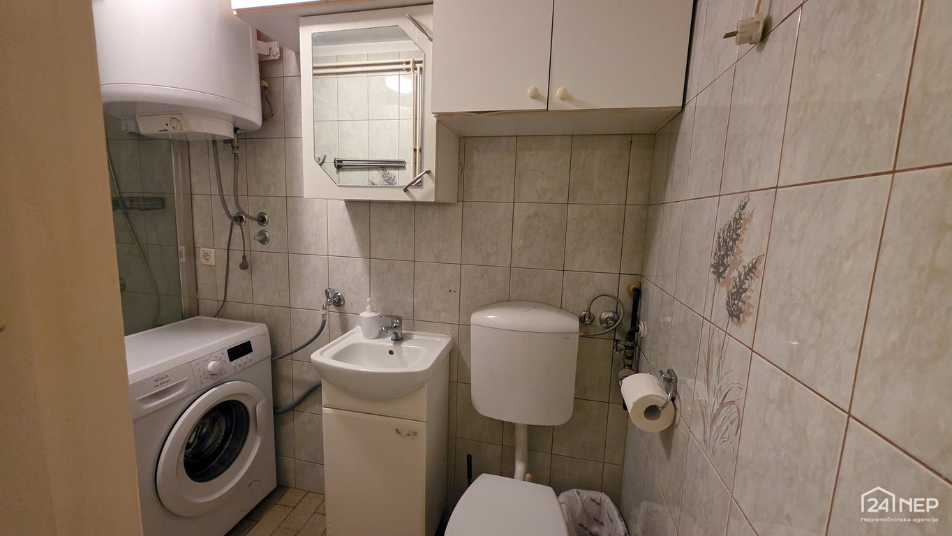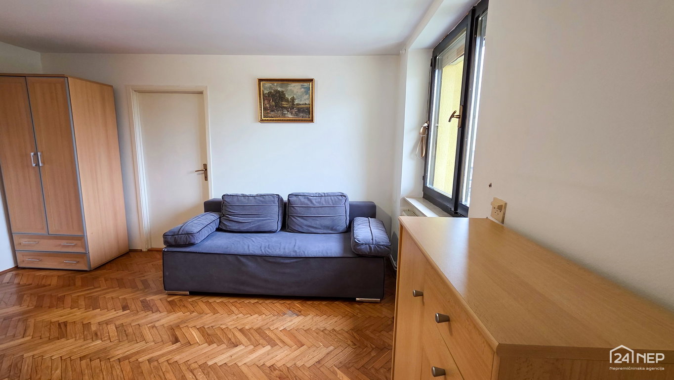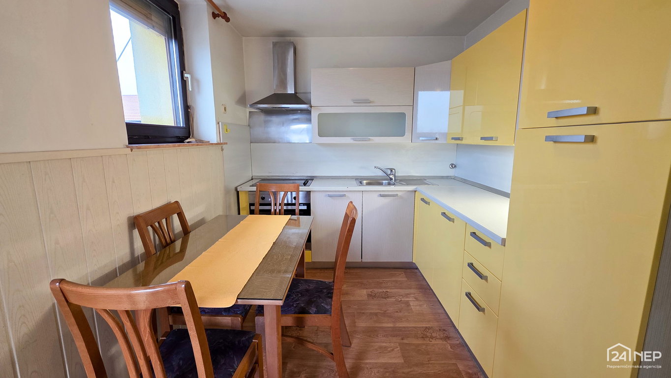 Razporeditev: predsoba, kopalnica z WC-jem, dnevna soba, kuhinja z izhodom na balkon, spalnica.