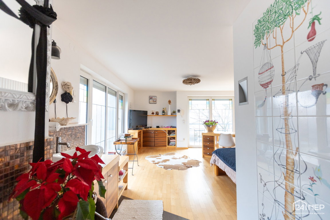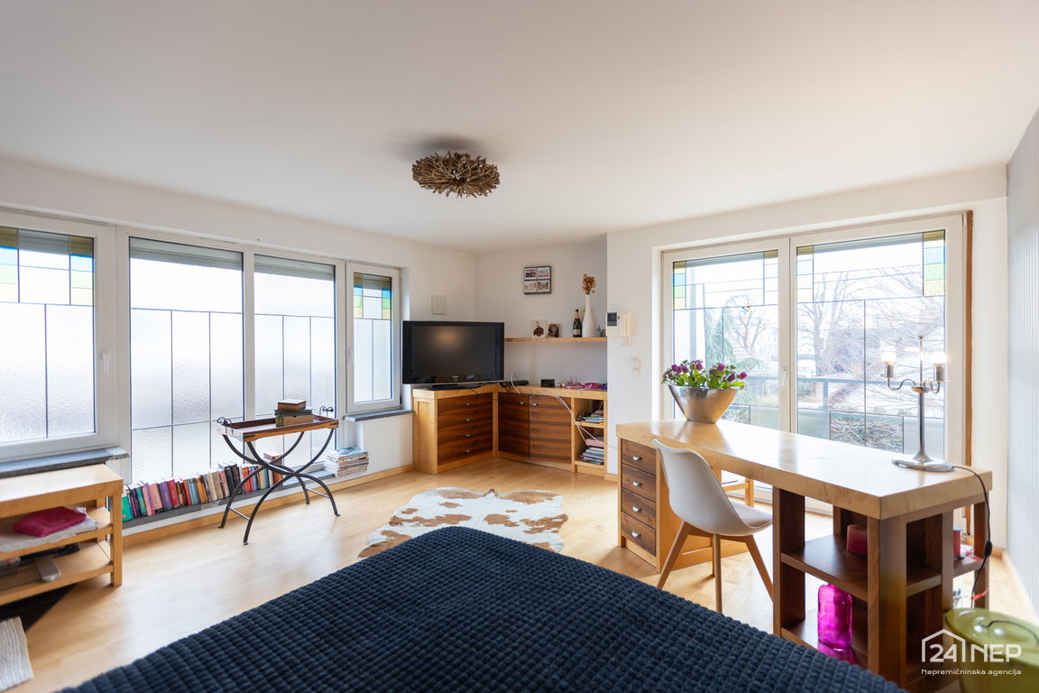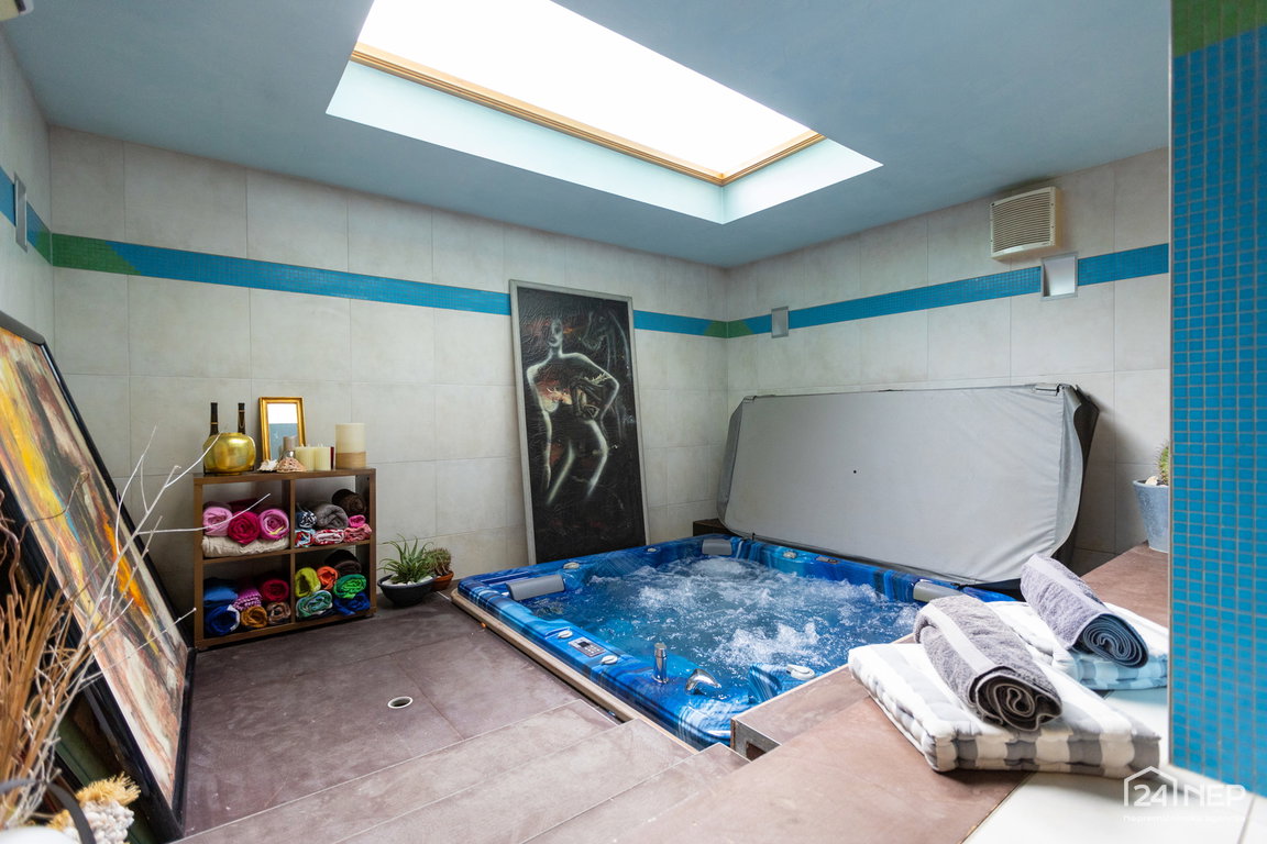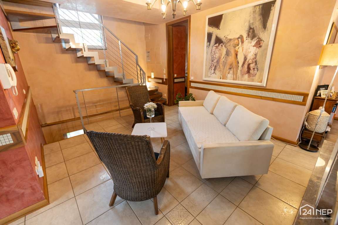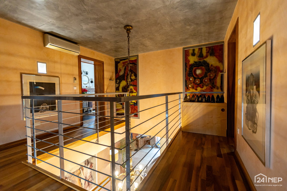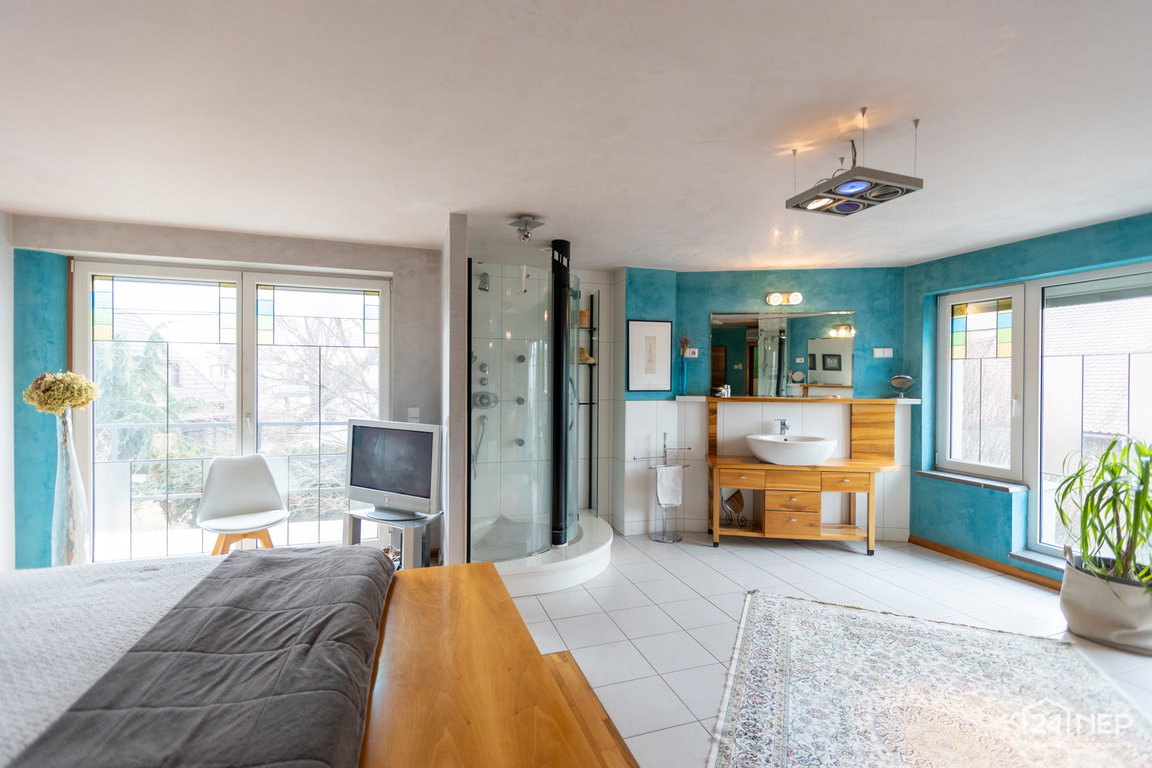 Glavna spalnica z lastno kopalnico in garderobno sobo ter otroška soba z lastno kopalnico in garderobo. Razporeditev zagotavlja zasebnost in udobje za vse člane gospodinjstva.