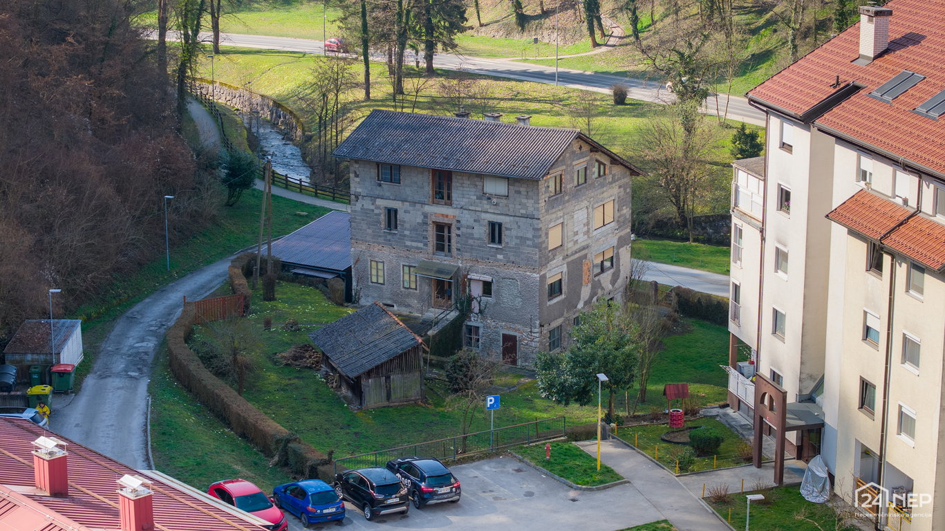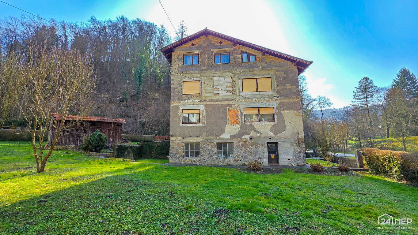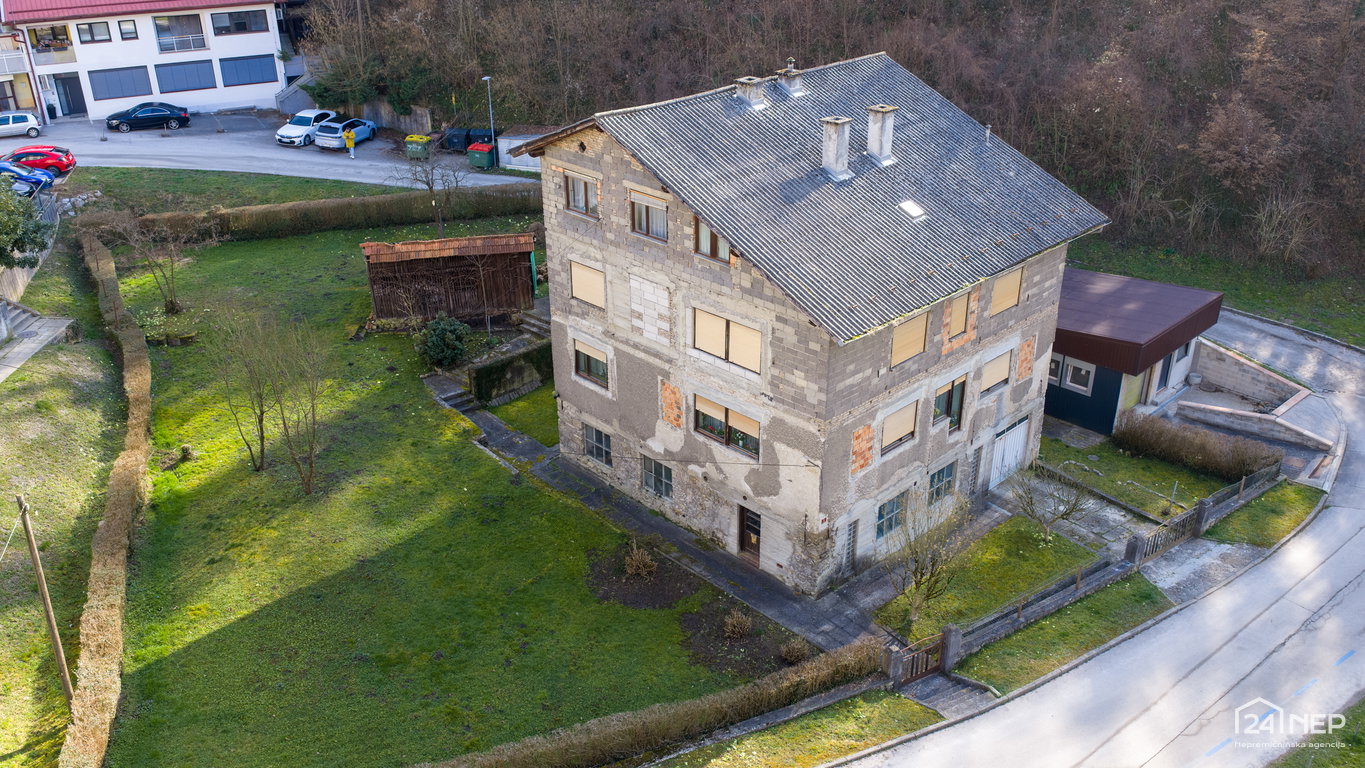 Samostojna hiša v velikosti 330 m2 neto tlorisne površine, se nahaja na gradbeni parceli v skupni velikosti 1.443 m2. Parcela z objekti (1.155 m2) in parcela ob objektu (288 m2) ter pomožni kmetijski del stavbe v velikosti 21,30 m2.