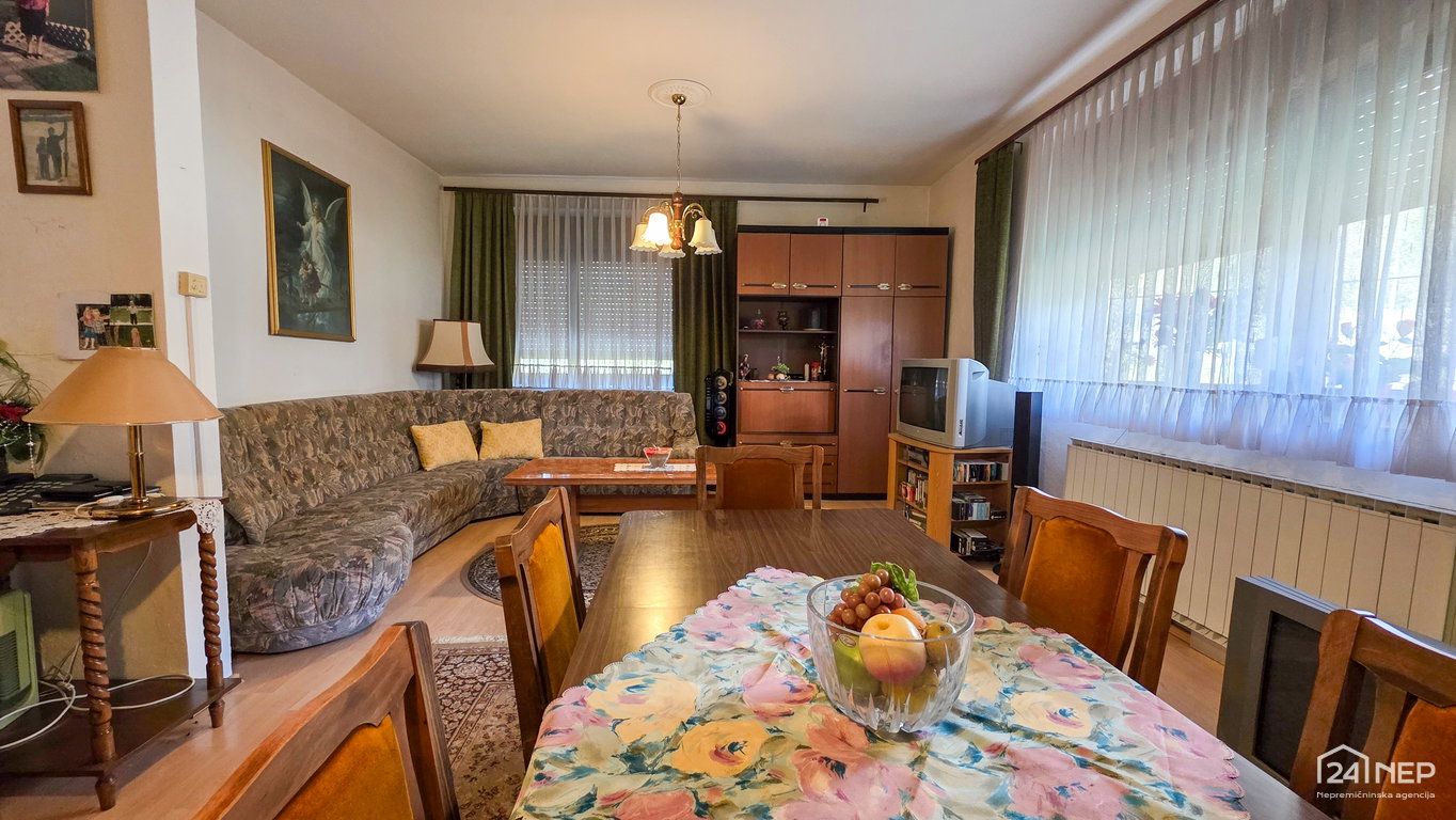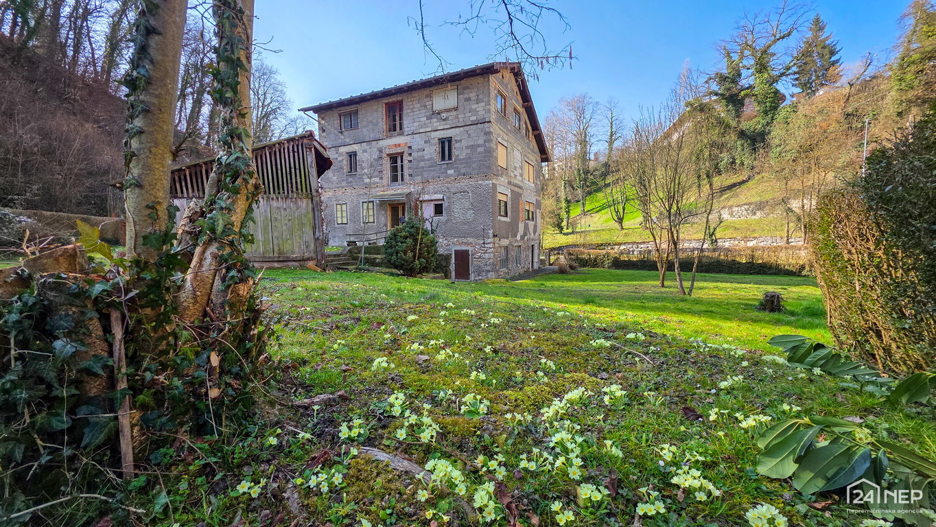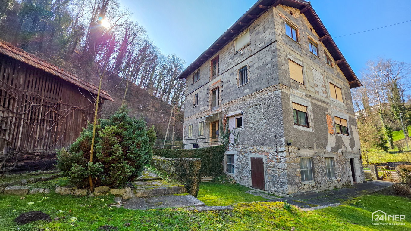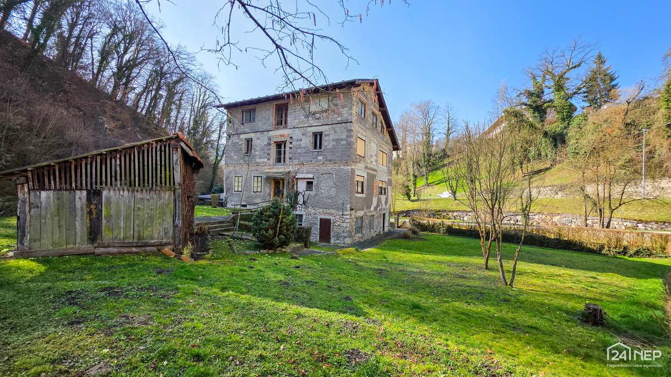 Samostojna hiša v velikosti 330 m2 neto tlorisne površine, se nahaja na gradbeni parceli v skupni velikosti 1.443 m2. Parcela z objekti (1.155 m2) in parcela ob objektu (288 m2) ter pomožni kmetijski del stavbe v velikosti 21,30 m2.