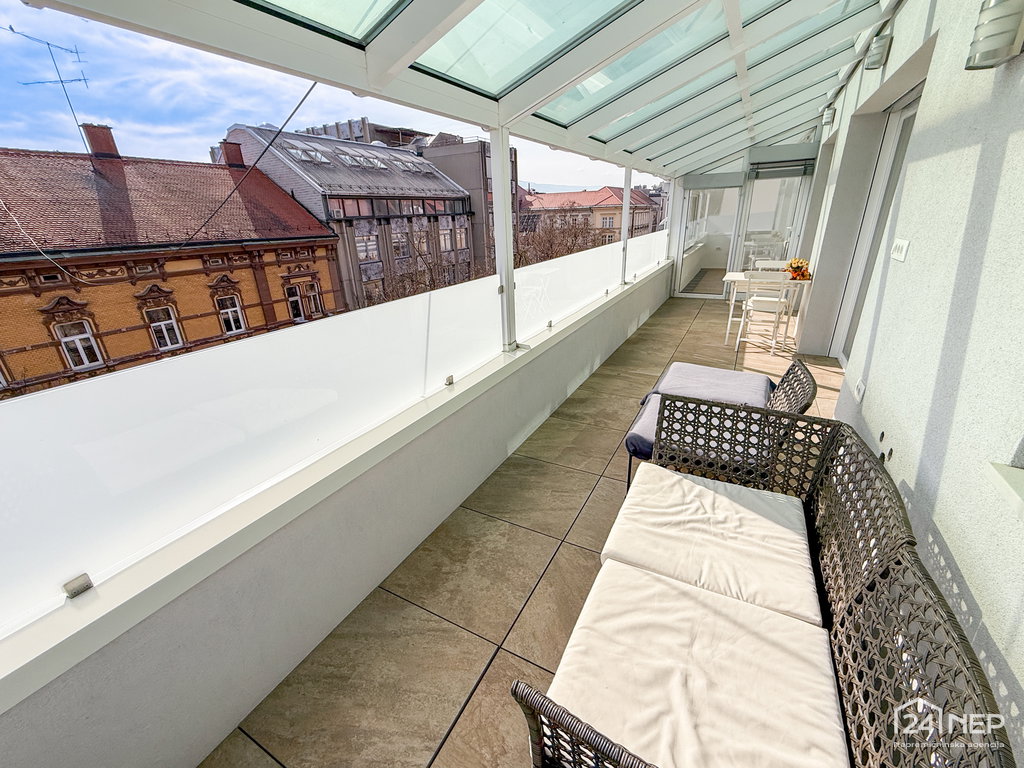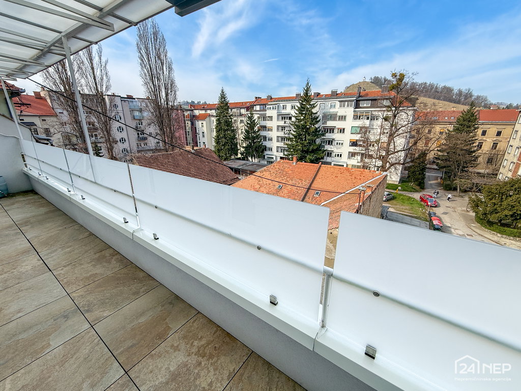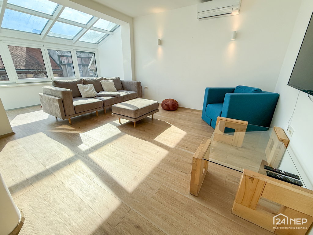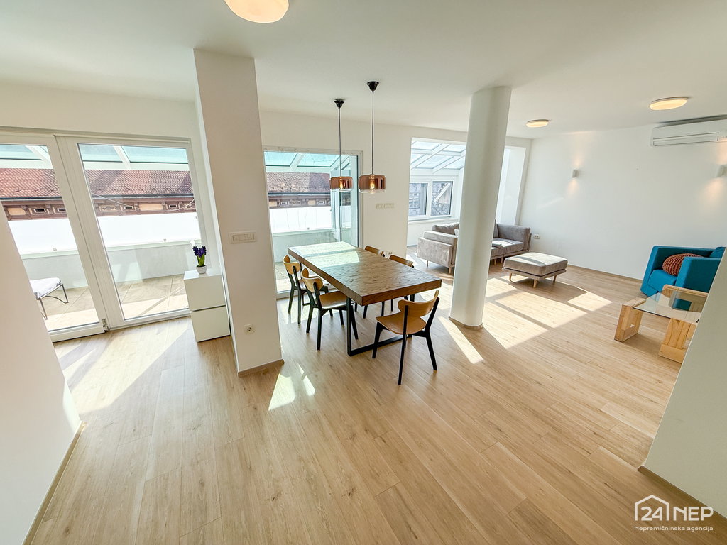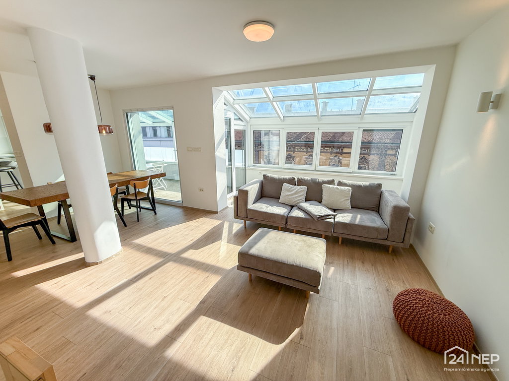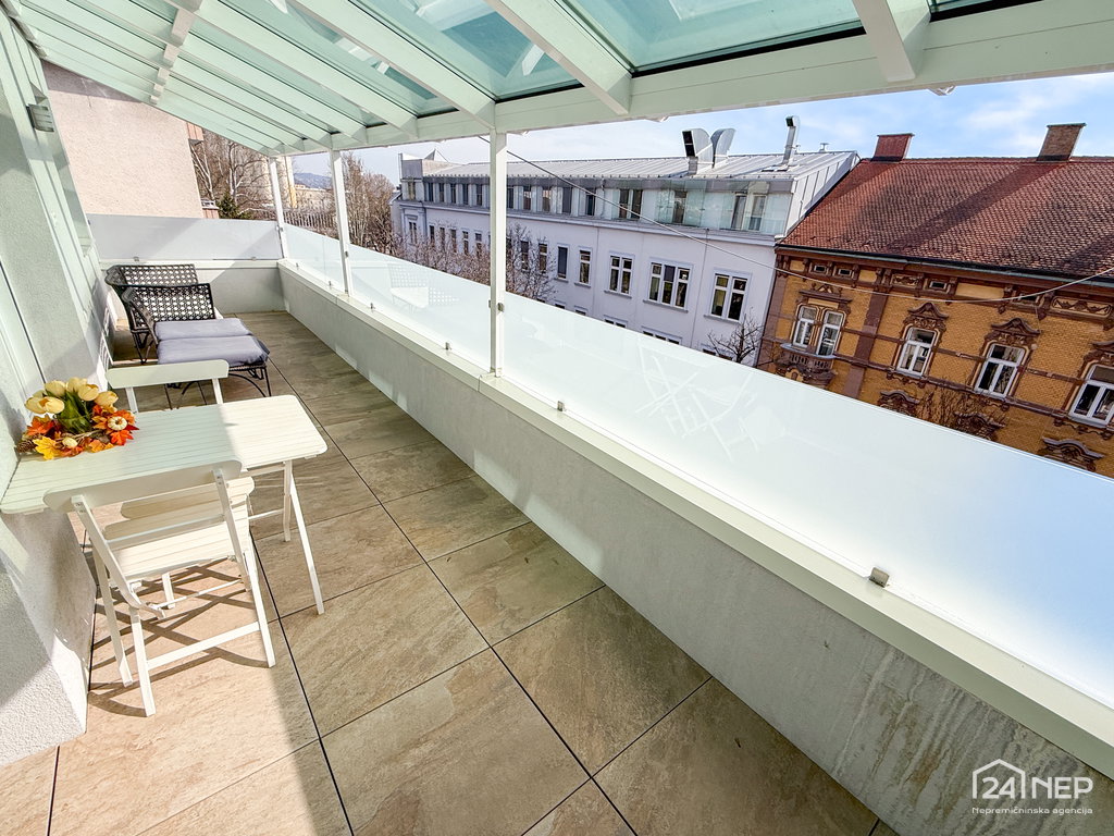 zadnje nadstropje, obnovljeno in opremljeno, izredno svetlo, prostorno, dve terasi, plinska peč4-sobni Penthouse v centru mesta