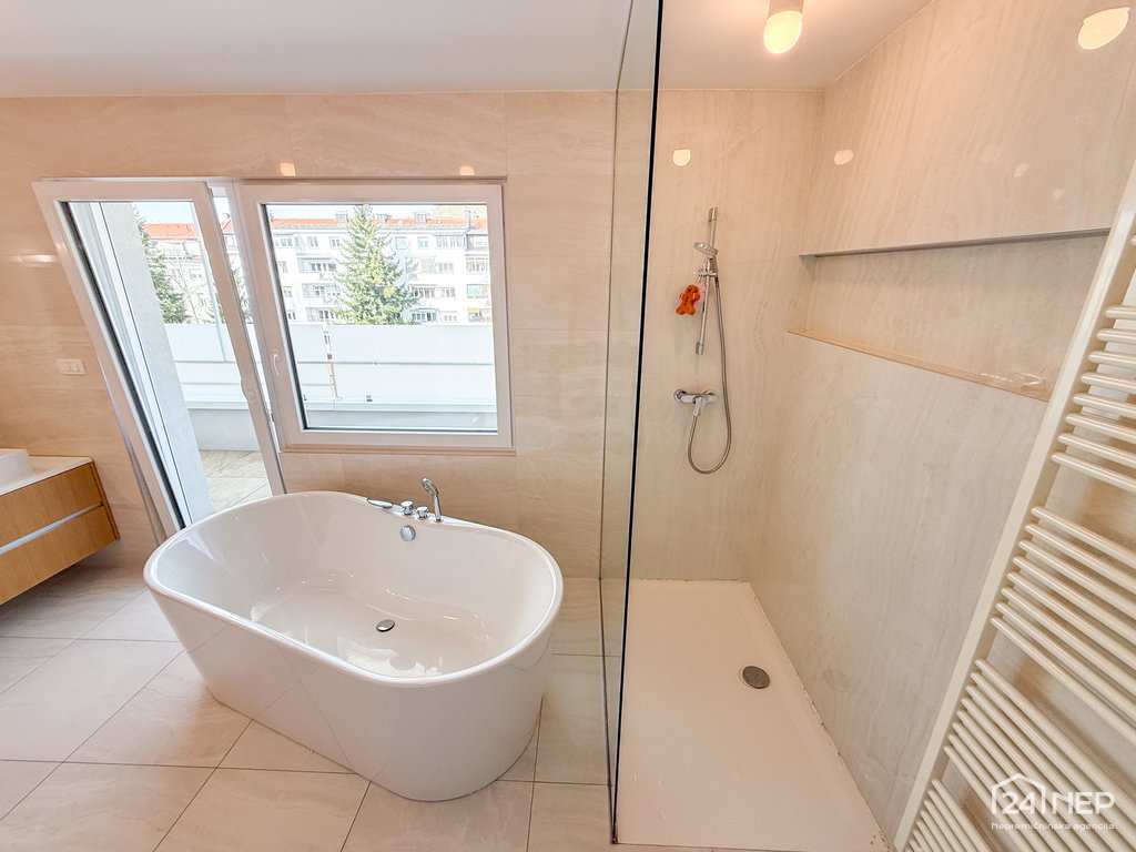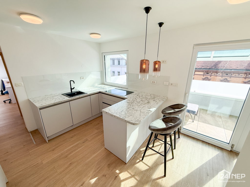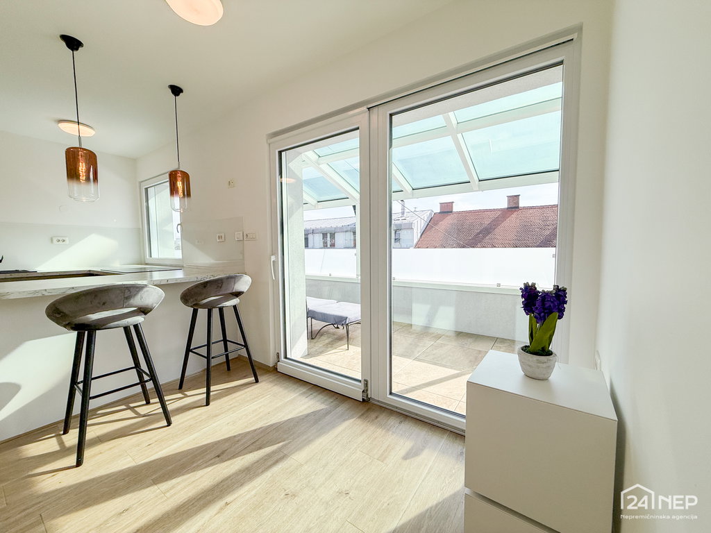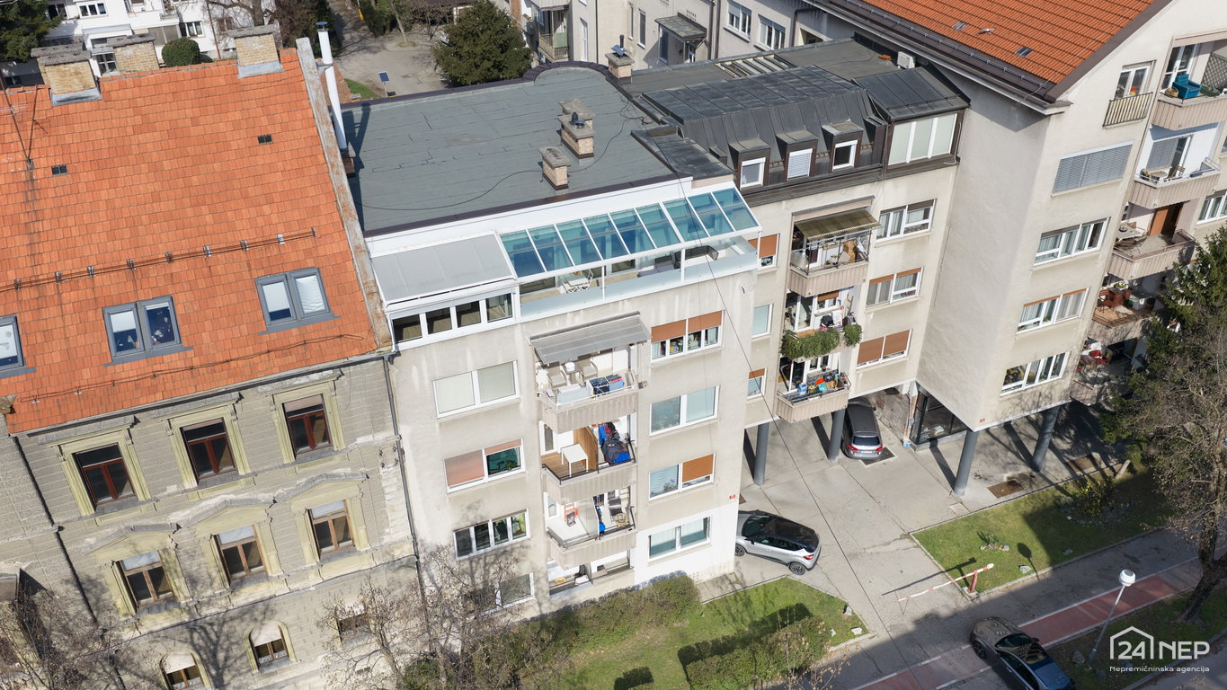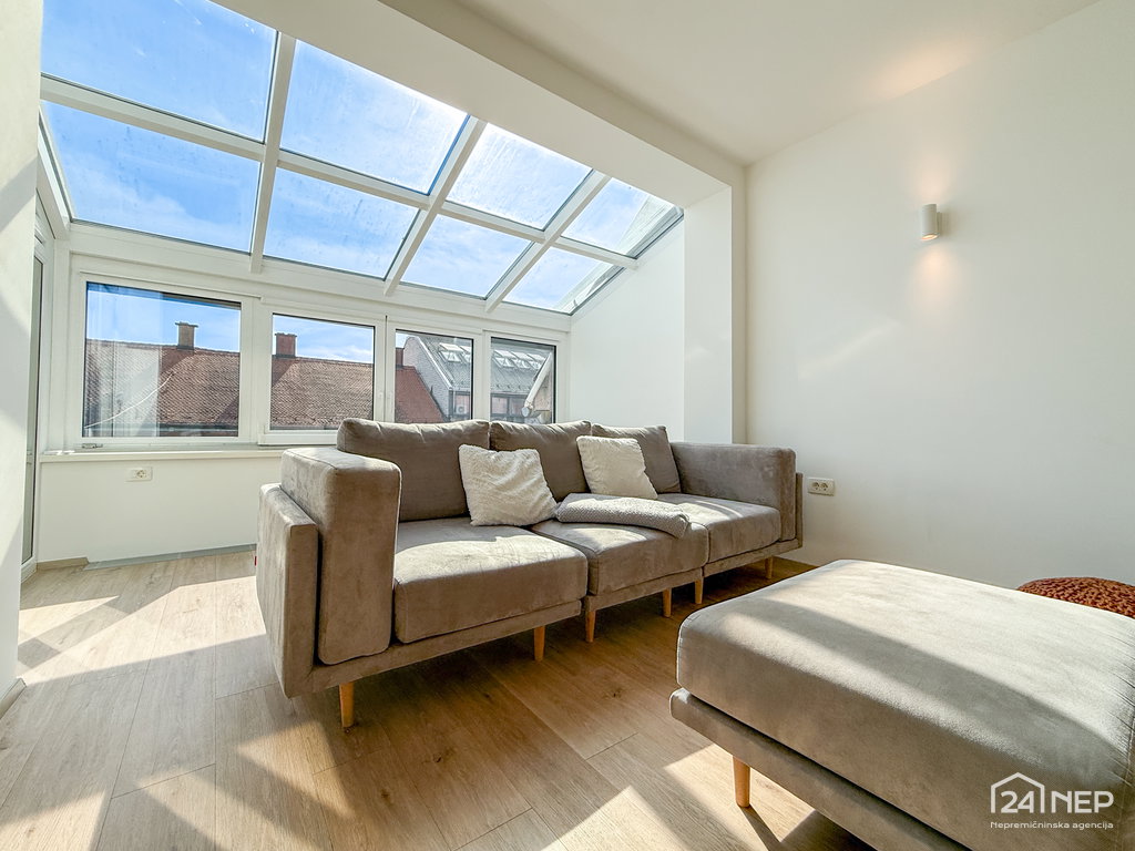 zadnje nadstropje, obnovljeno in opremljeno, izredno svetlo, prostorno, dve terasi, plinska peč4-sobni Penthouse v centru mesta
