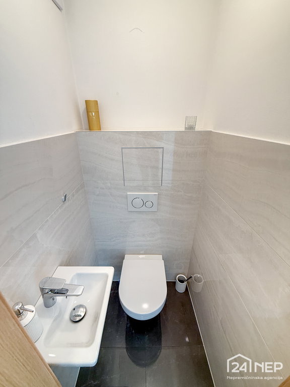 - Opomba: dejansko izmerjenih: 128 m2 bivalne povrsine + dve terasi, terasa jug-15m2; terasa sever-11m2, ter klet v izmeri 7m2 (vse skupaj 161 m2)