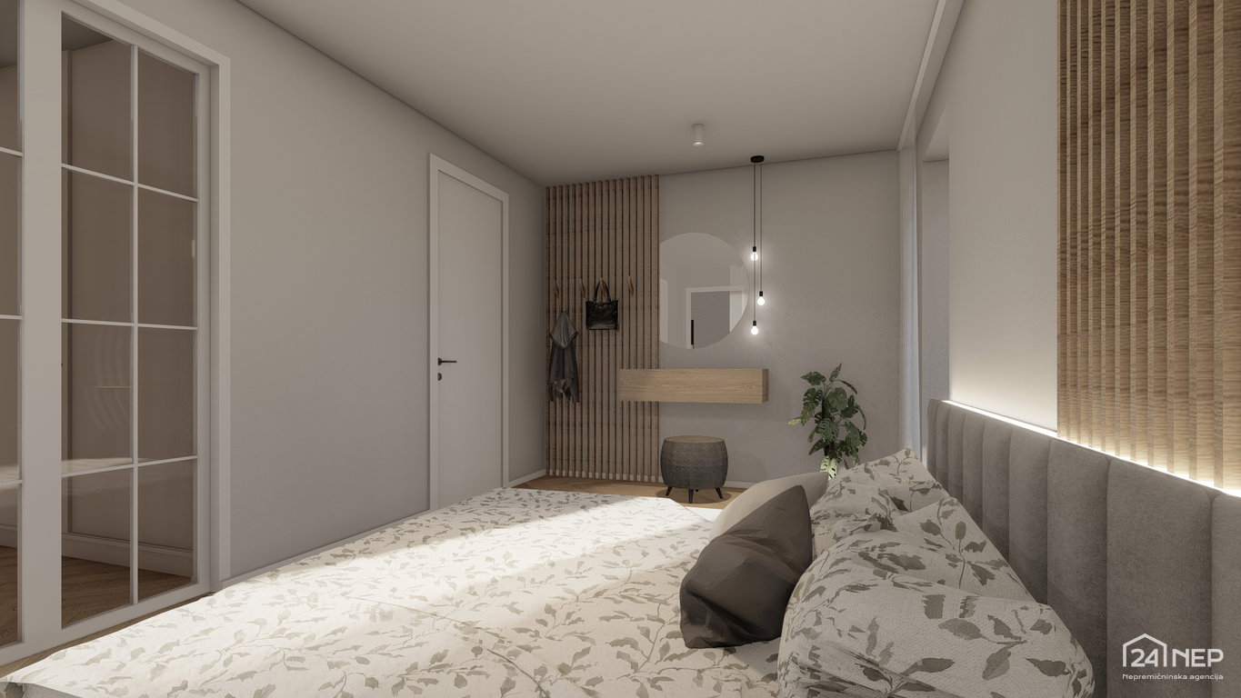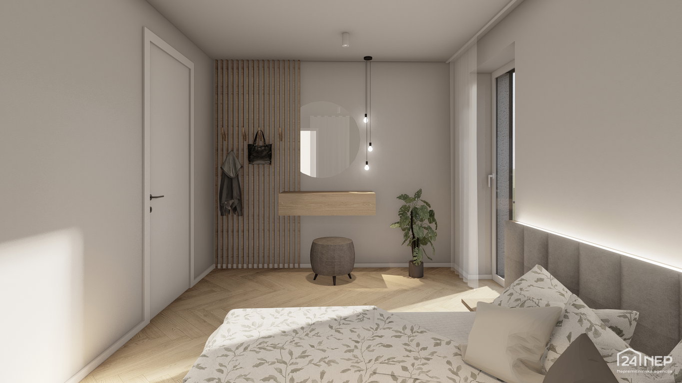 - Spalnica 14,40 m2 in garderoba 7,30 m2