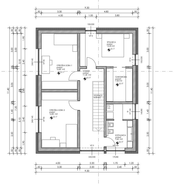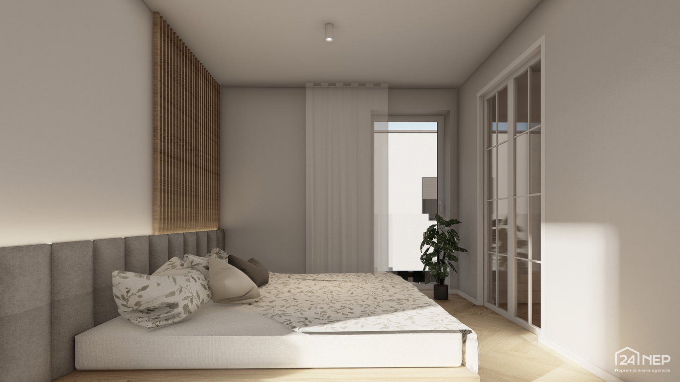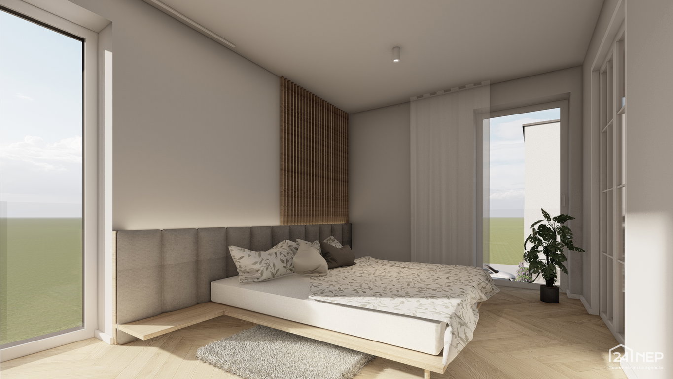 - Spalnica 14,40 m2 in garderoba 7,30 m2