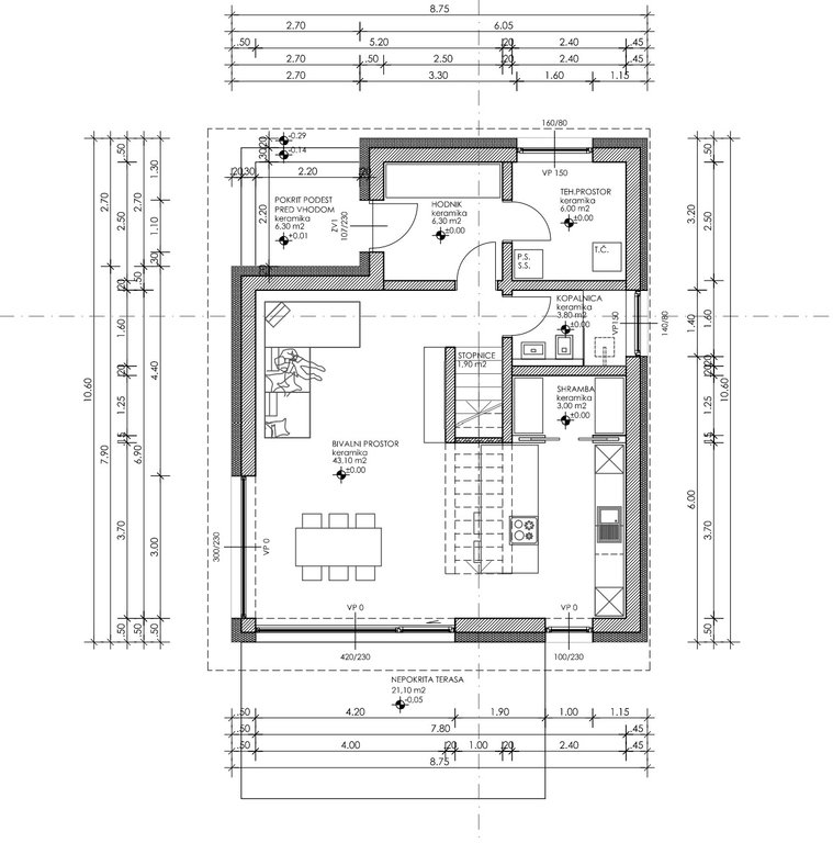 - Tlorisne površine: pritličje 62,20 m² / nadstropje 76,30 m² / terasa 21,10 m2