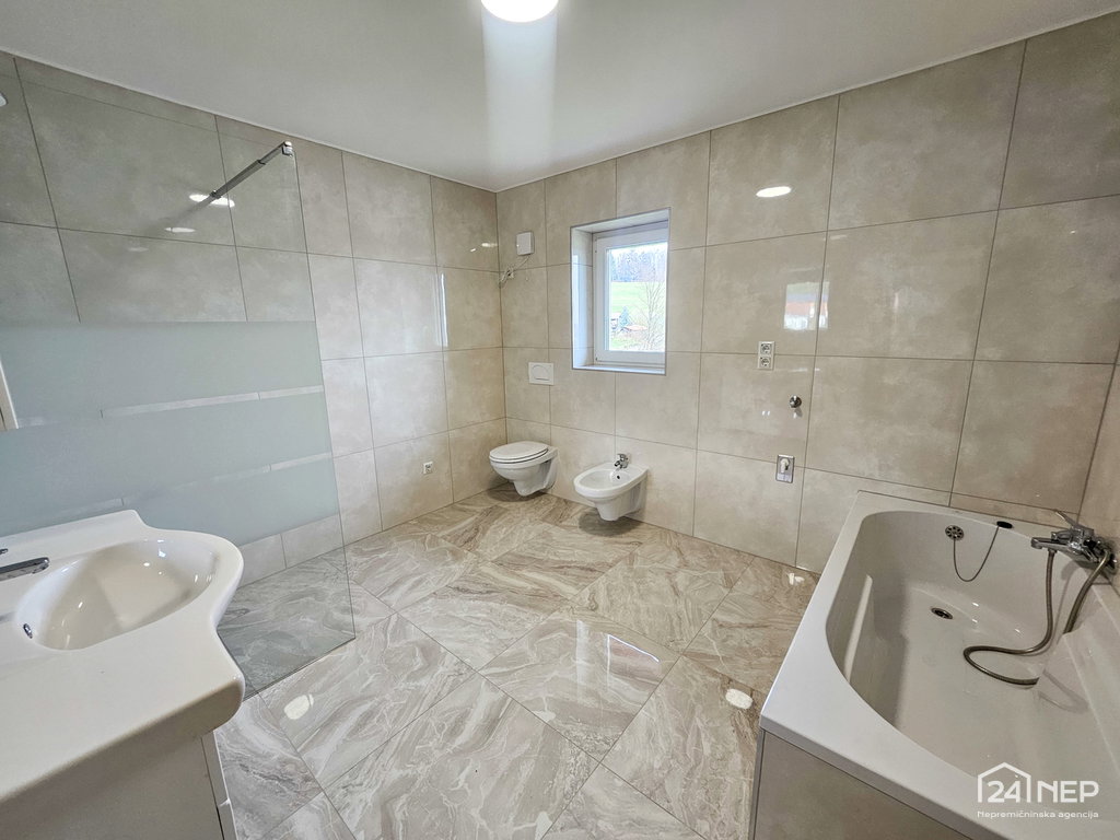 Na voljo je enota dvojčka neto tlorisne površine 148,6 m², oz. uporabne površine 109,9 m²