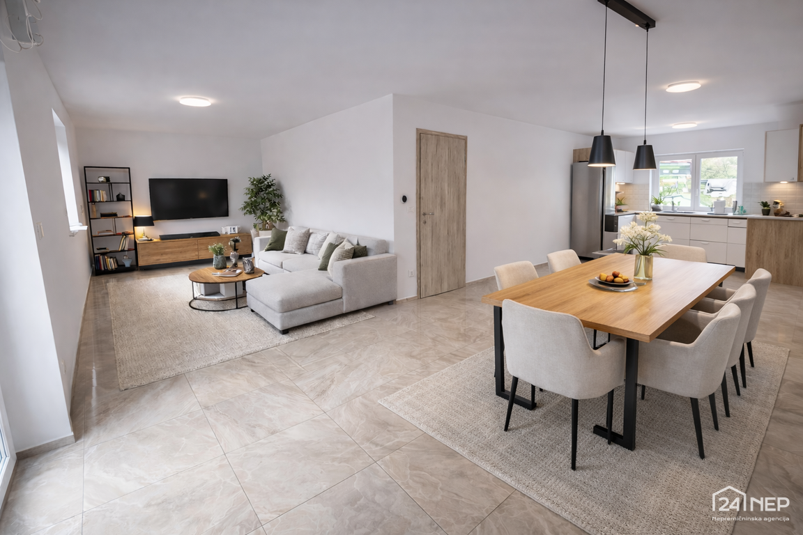 Tloris je zasnovan premišljeno — sobe niso kompromis, ampak ponujajo dejansko uporabno površino za udobno bivanje.