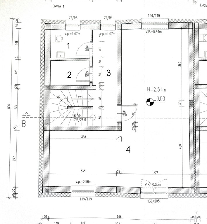 • Gradnja: opečna (30 cm) z AB vezmi; klet v betonski izvedbi