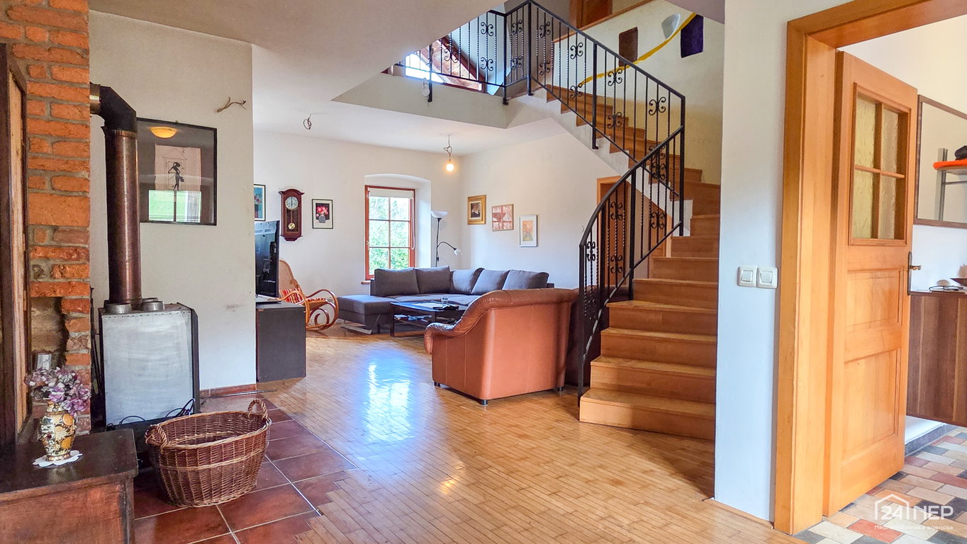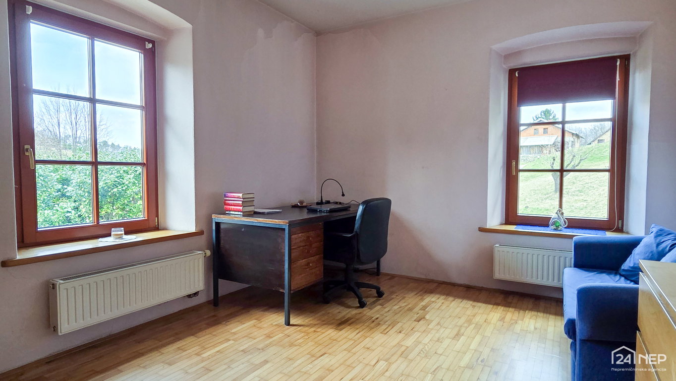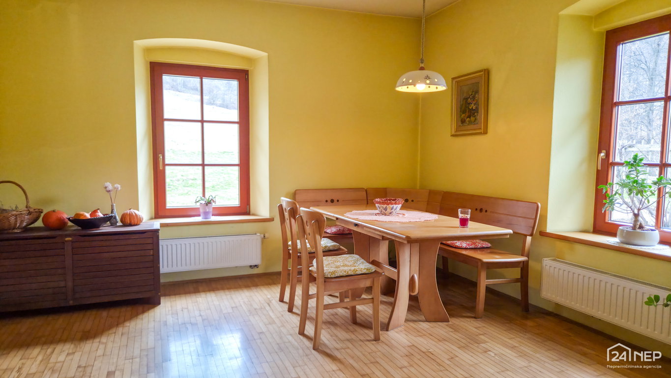 • Ogrevanje: centralno-radiatorsko s pečjo na olje, dodatno lončene peči in peč na drva.