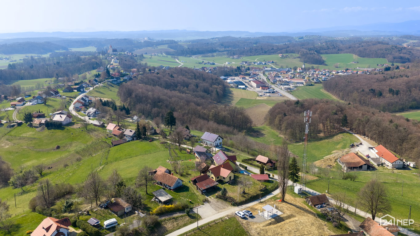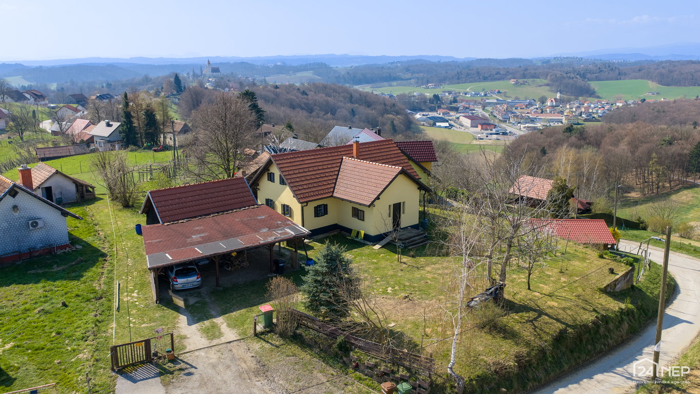 Na sončni in mirni lokaciji v Štajngrovi pri Benediktu, le približno 1,5 km od centra Benedikta, je naprodaj samostojna hiša z lepim razgledom, ki ponuja redko priložnost za ustvarjanje doma v objemu narave.