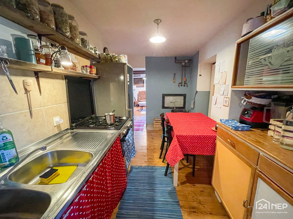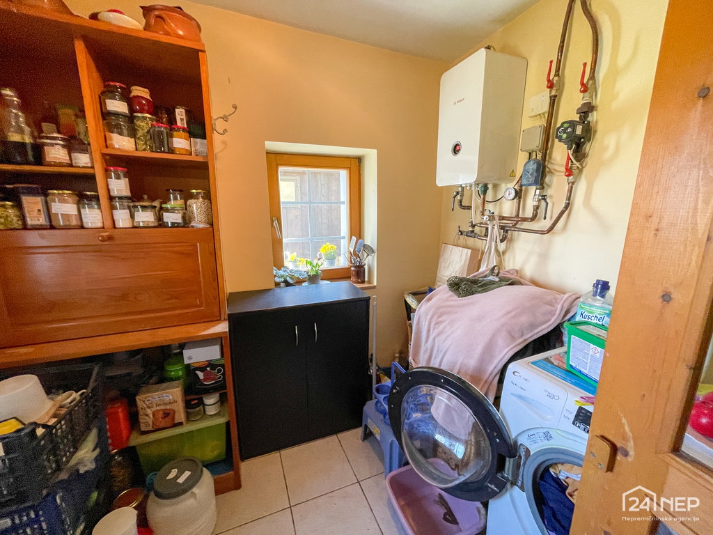 Hiša ponuja še veliko uporabnih prostorov, kot so poletna hiška, dve delavnici in klet, kjer sadje lahko ostane sveže tudi do pet mesecev. Poseben čar ji dajejo tudi originalna stara vrata na hodniku, ki ohranjajo zgodbo prostora.