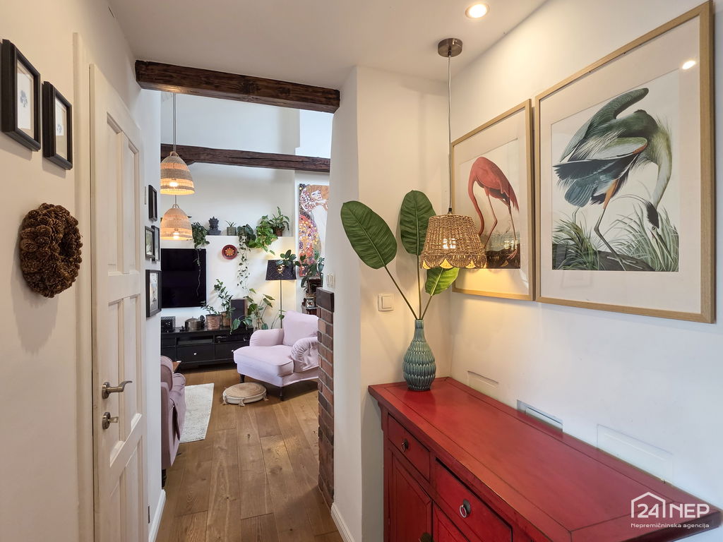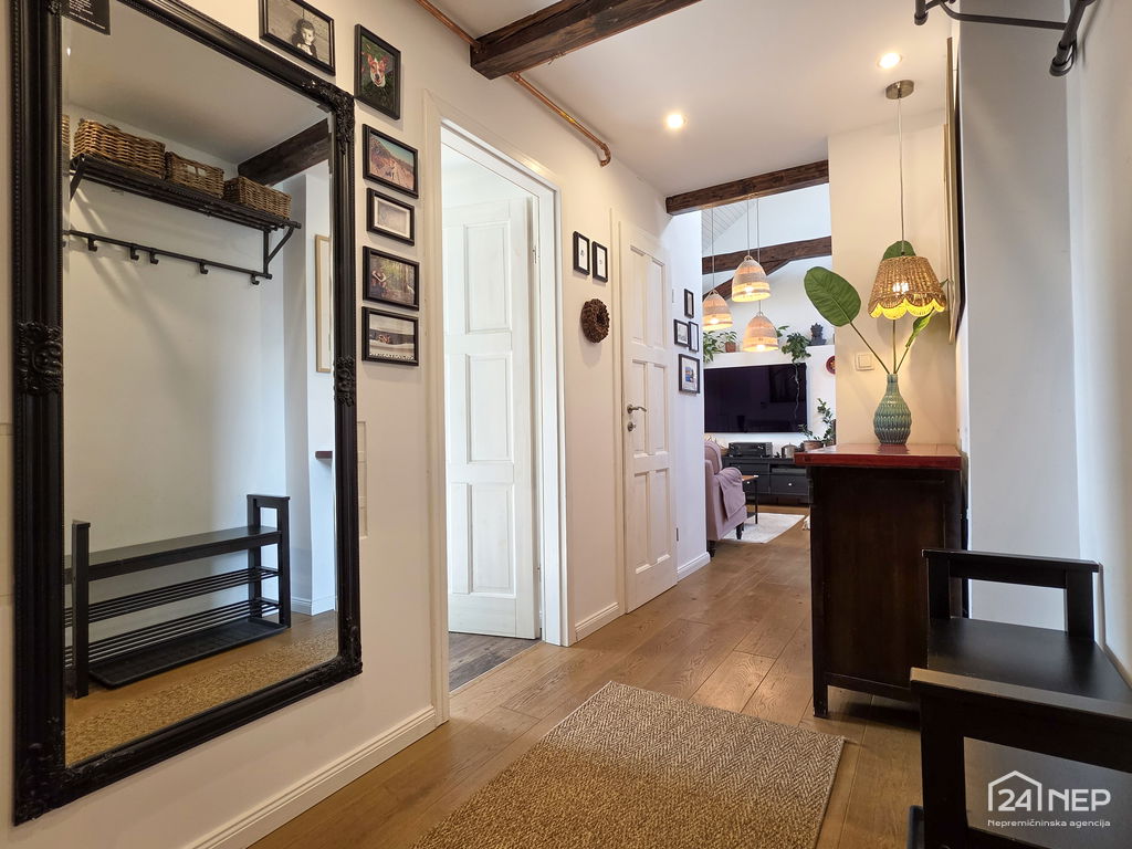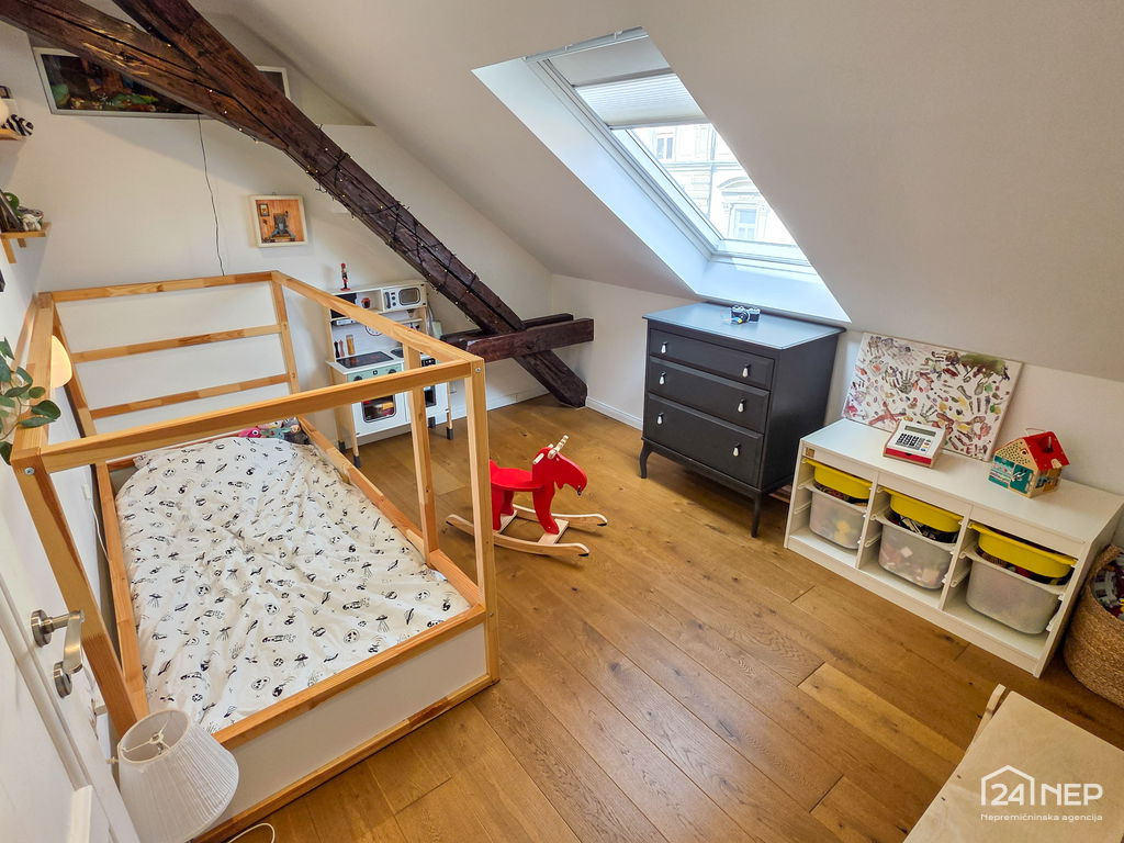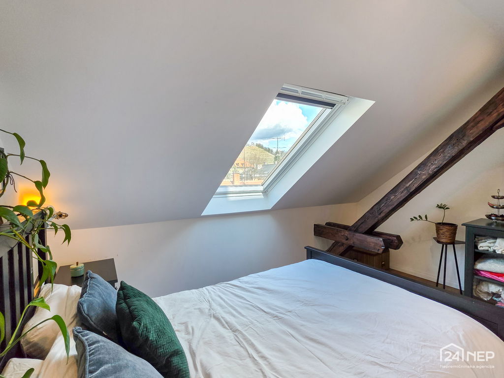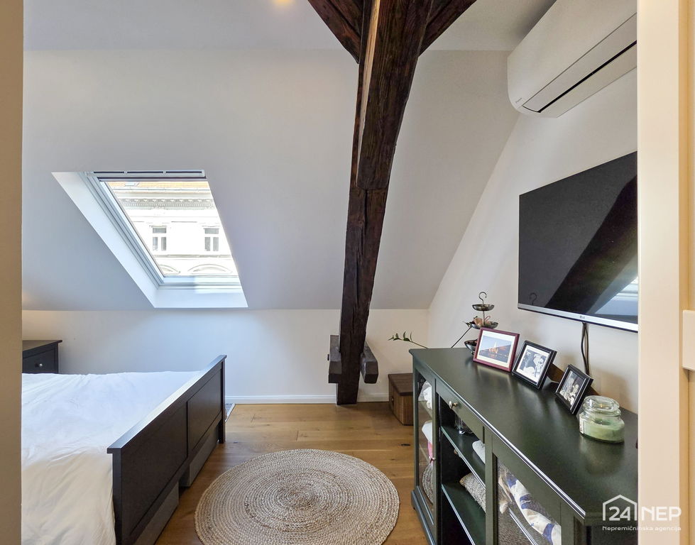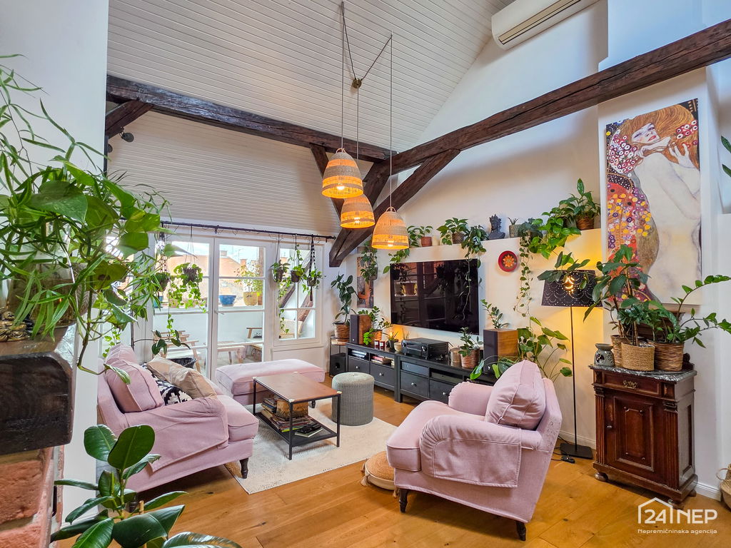V samem središču mesta vas pričakuje edinstveno, skrbno zasnovano 3-sobno mansardno stanovanje, ki združuje toplino doma in eleganco sodobnega bivanja.