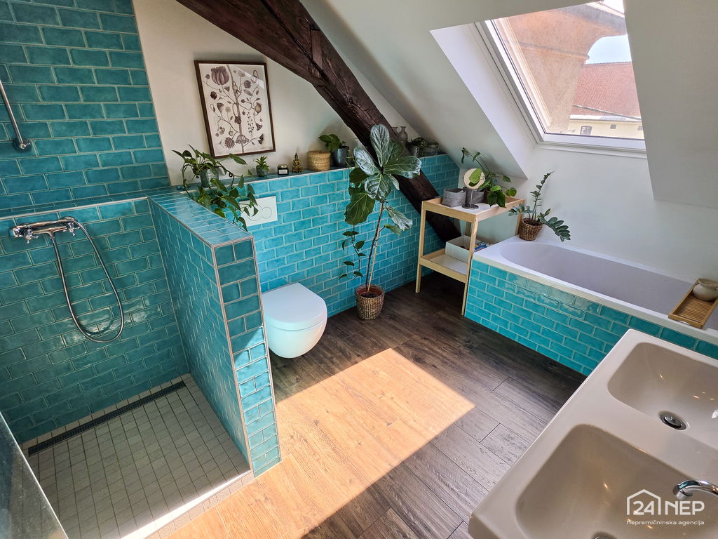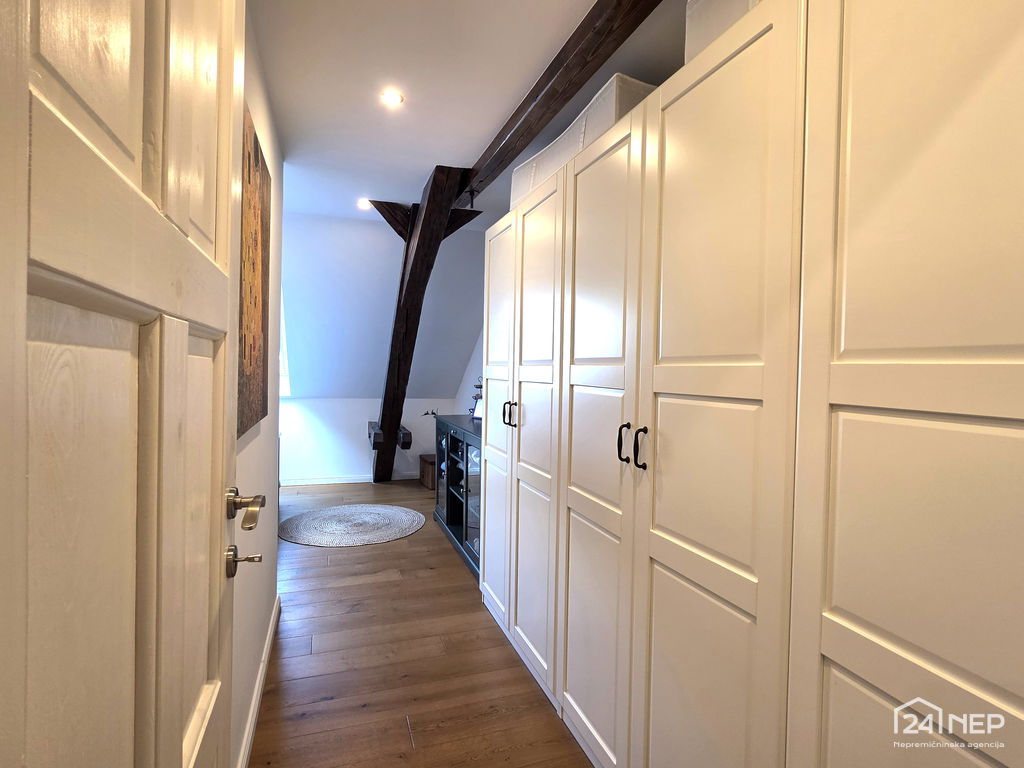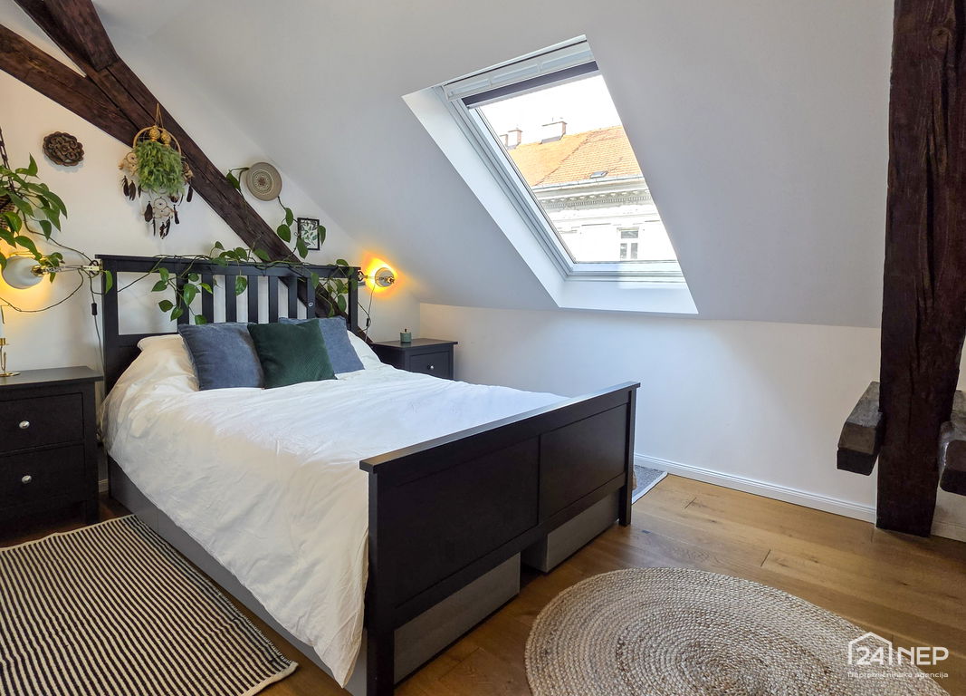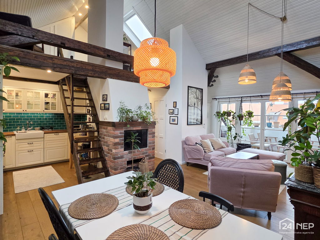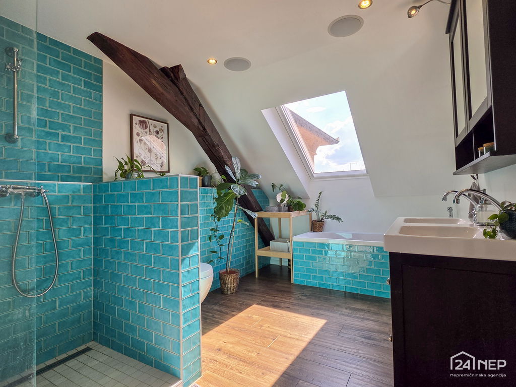 V samem središču mesta vas pričakuje edinstveno, skrbno zasnovano 3-sobno mansardno stanovanje, ki združuje toplino doma in eleganco sodobnega bivanja.