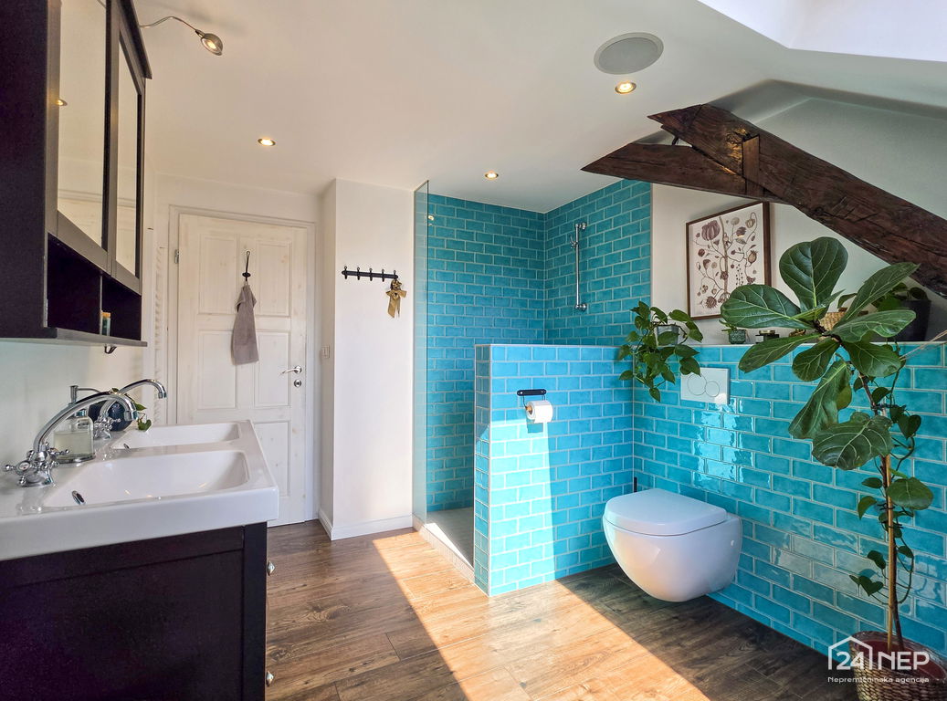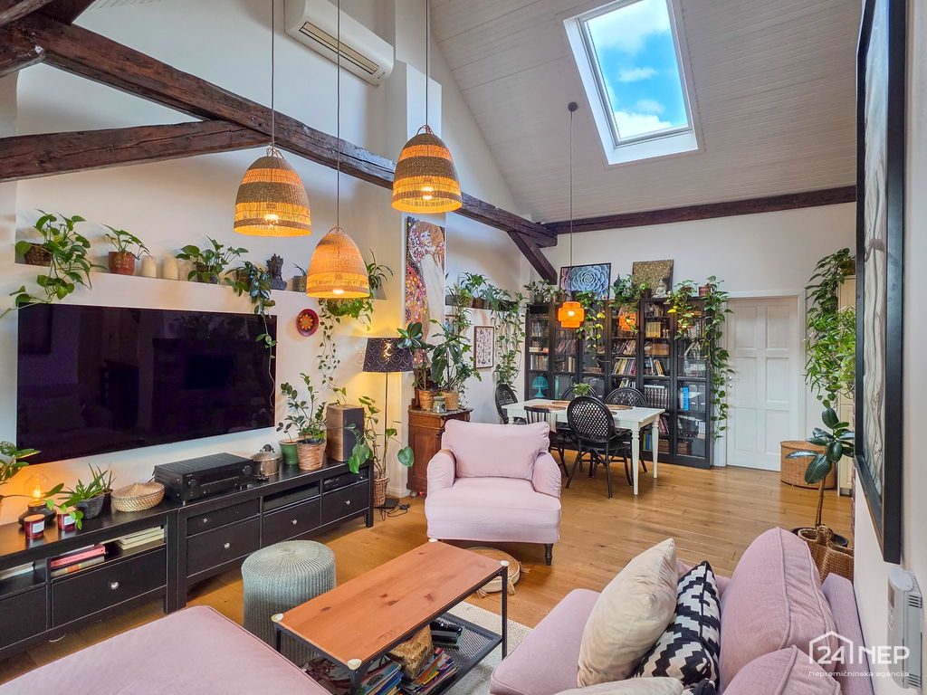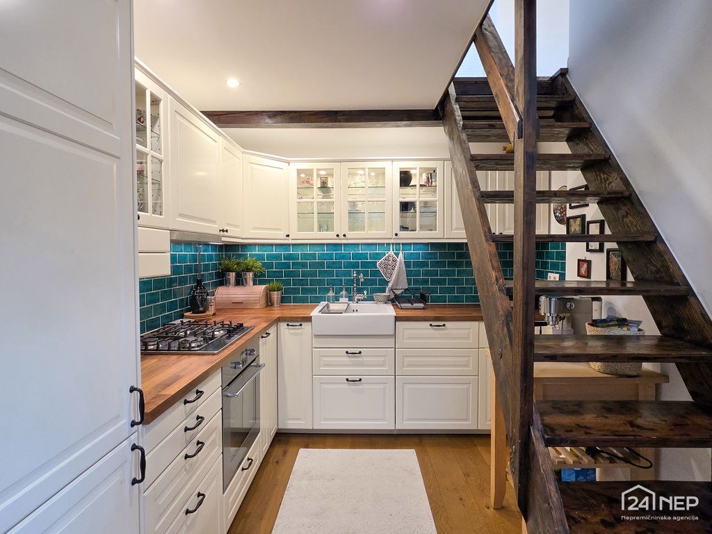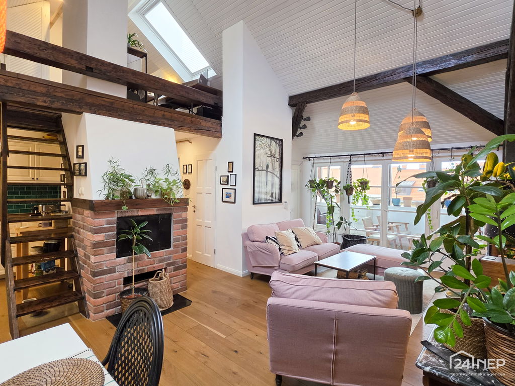 Prostoren in svetel dnevni del ustvarja občutek svobode, dodatna galerija pa ponuja popoln kotiček za delo, ustvarjanje ali sproščanje. Visoki stropi in premišljena razporeditev prostorov poudarjajo zračnost stanovanja, medtem ko strešna okna v prostor vabijo obilico naravne svetlobe.
