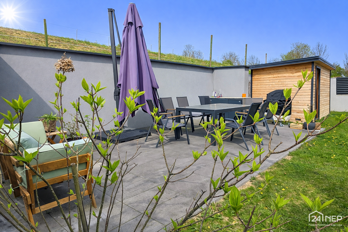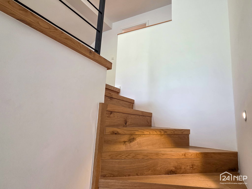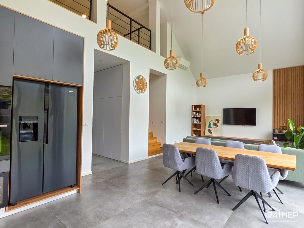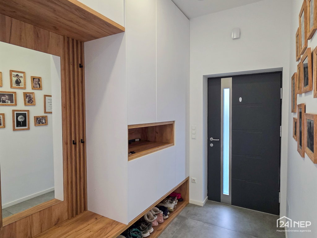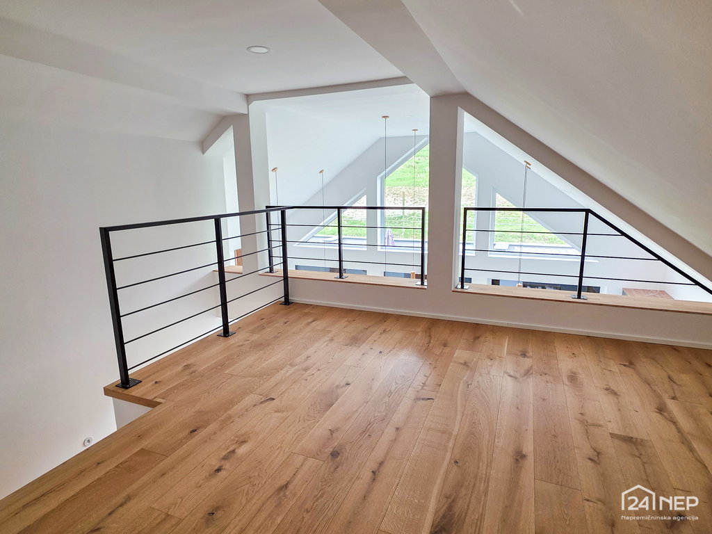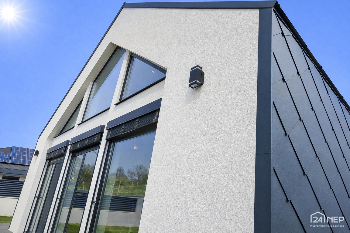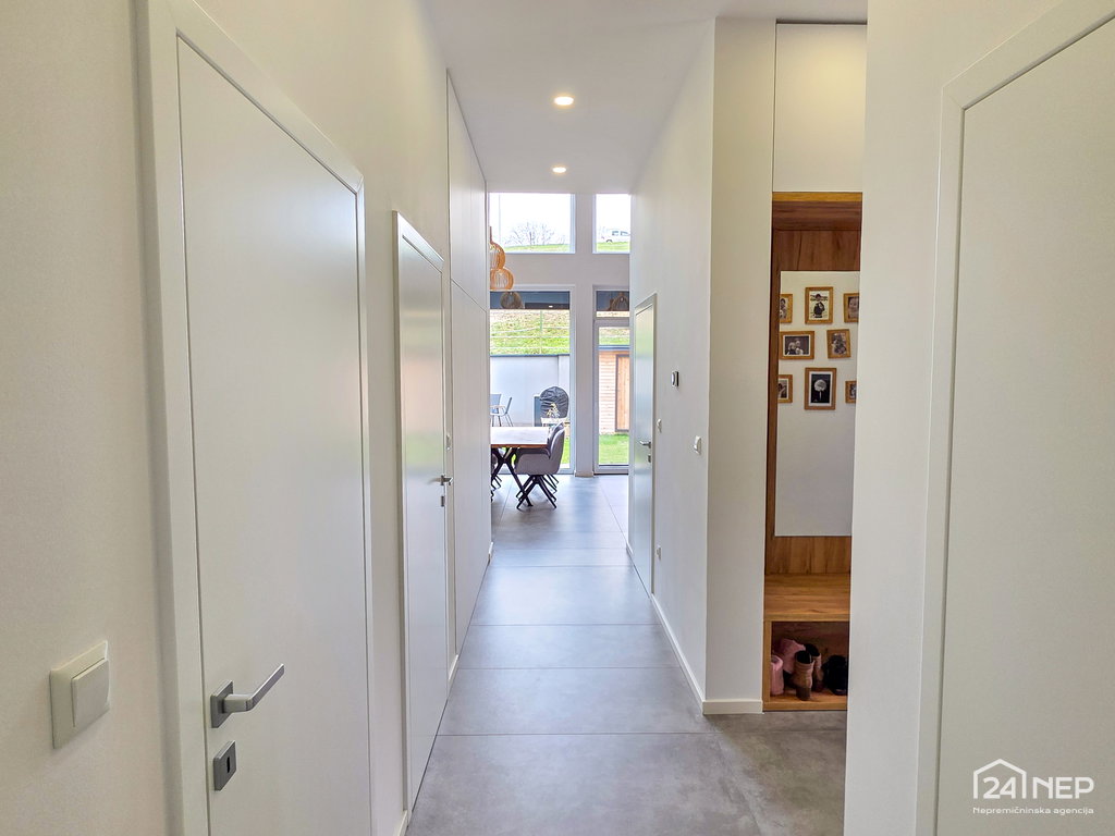 Hiša ponuja sodoben in funkcionalen tloris z izrazitim občutkom prostornosti, ki ga dodatno poudari galerija in višji stropovi. Vgrajeni materiali, oprema po meri in tehnične rešitve zagotavljajo kakovostno bivanje brez kompromisov. Zunanjost z letno kuhinjo in urejeno okolico omogoča prijetno preživljanje prostega časa v zasebnosti. Gre za celostno dovršen dom, primeren za tiste, ki iščejo kombinacijo arhitekturne čistosti, udobja in mirne lokacije z dobro dostopnostjo.